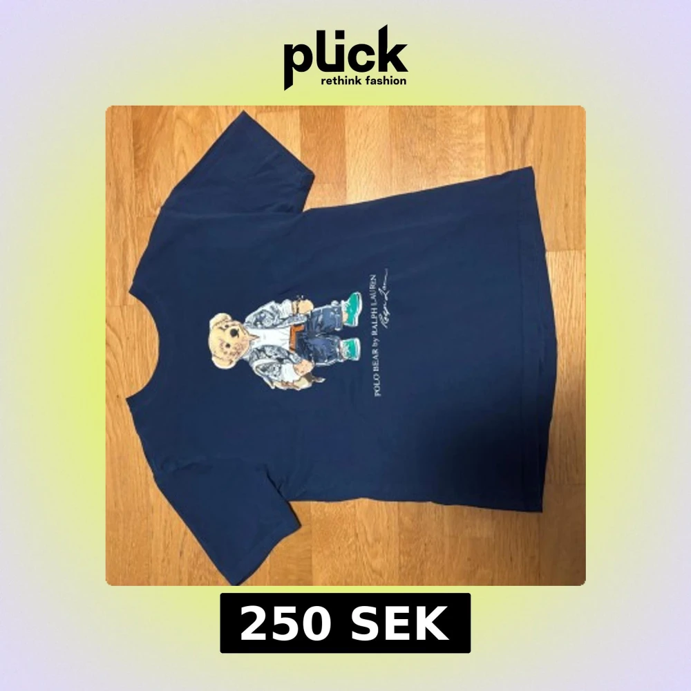 Snygg mörkblå t-shirt från Ralph Lauren med Polo Bear-tryck på framsidan. Klassisk rund hals och korta ärmar. Tillverkad i mjuk bomull som känns skön mot huden. Perfekt för dig som gillar streetwear och ikoniska prints.