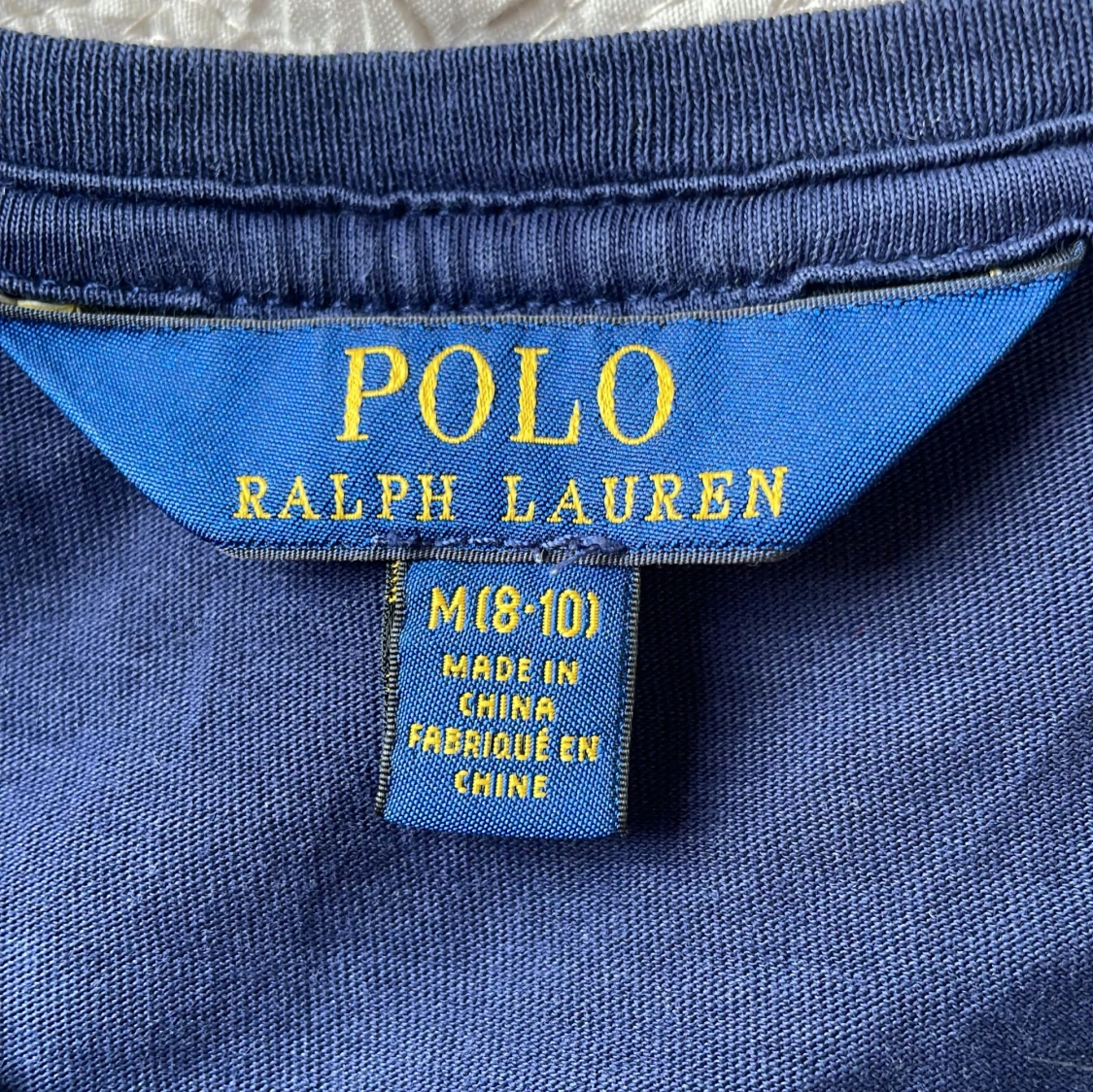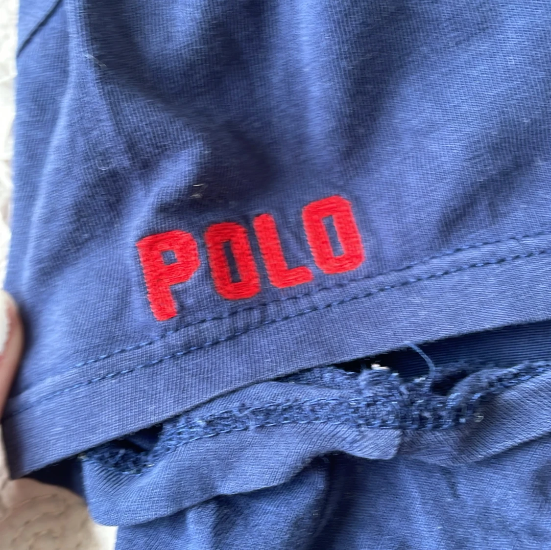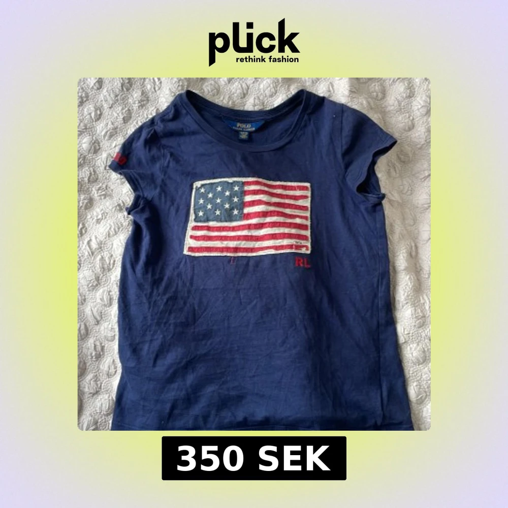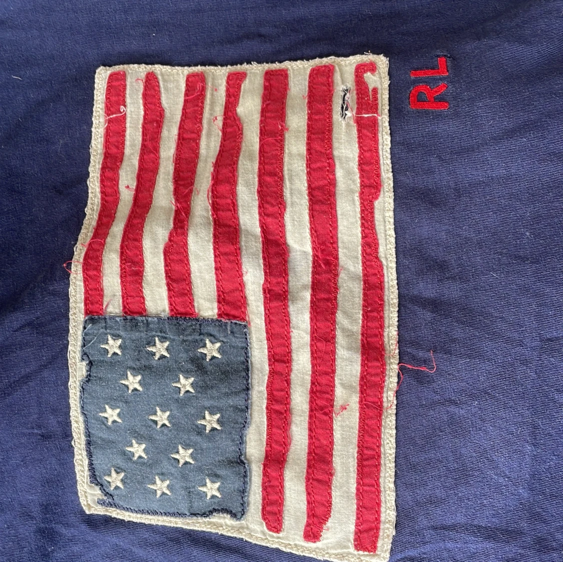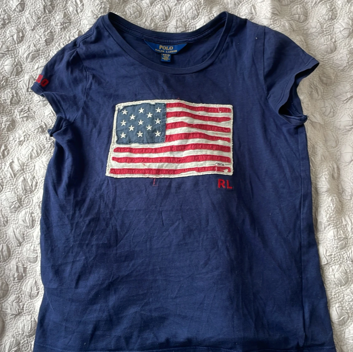 Mörkblå t-shirt från Polo Ralph Lauren med broderad amerikansk flagga på bröstet och röd POLO-text på ärmen. Klassisk rund hals och korta ärmar. Tillverkad i mjuk bomull, perfekt för en avslappnad stil.