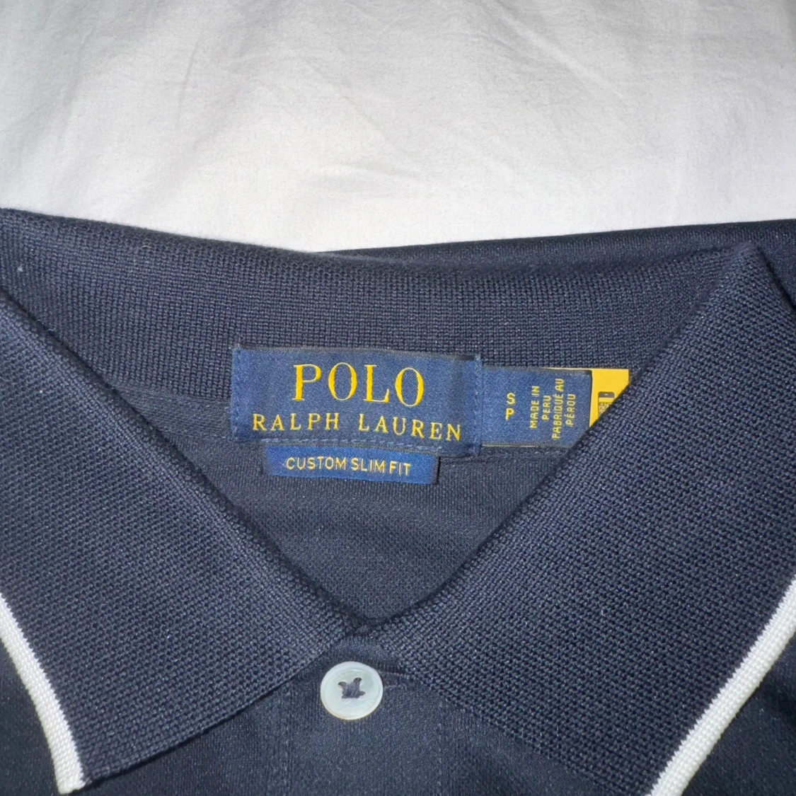 Säljer en snygg mörkblå pikétröja från Ralph Lauren. Med stretchigt material (42% Polyester, 58% bomull). Varan är i mycket fint skick utan några skavanker, (9/10) om inte (10/10). Mått: Längd från axeln: 65 cm Midjemått: 48,5 cm. Perfekt för både vardag och lite finare tillställningar! Detta är en gammal modell och den går inte få tag på längre. Fundera inte om att kontakta vid ytterligare frågor! 😃👕