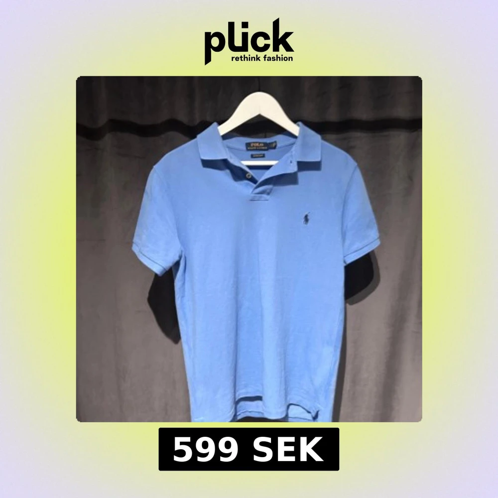 Snygg ljusblå pikétröja från Polo Ralph Lauren med klassisk krage och två knappar. Tröjan har korta ärmar och den ikoniska broderade loggan på bröstet. Modellen är custom slim fit och tillverkad i mjuk bomull. Storlek S men passar S-M, skriv vid minsta fundering!