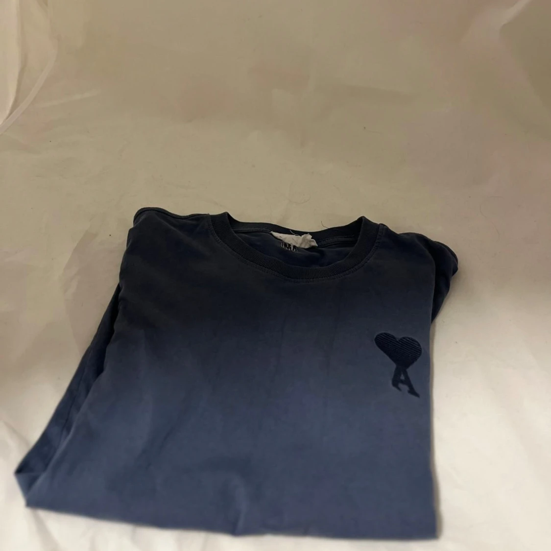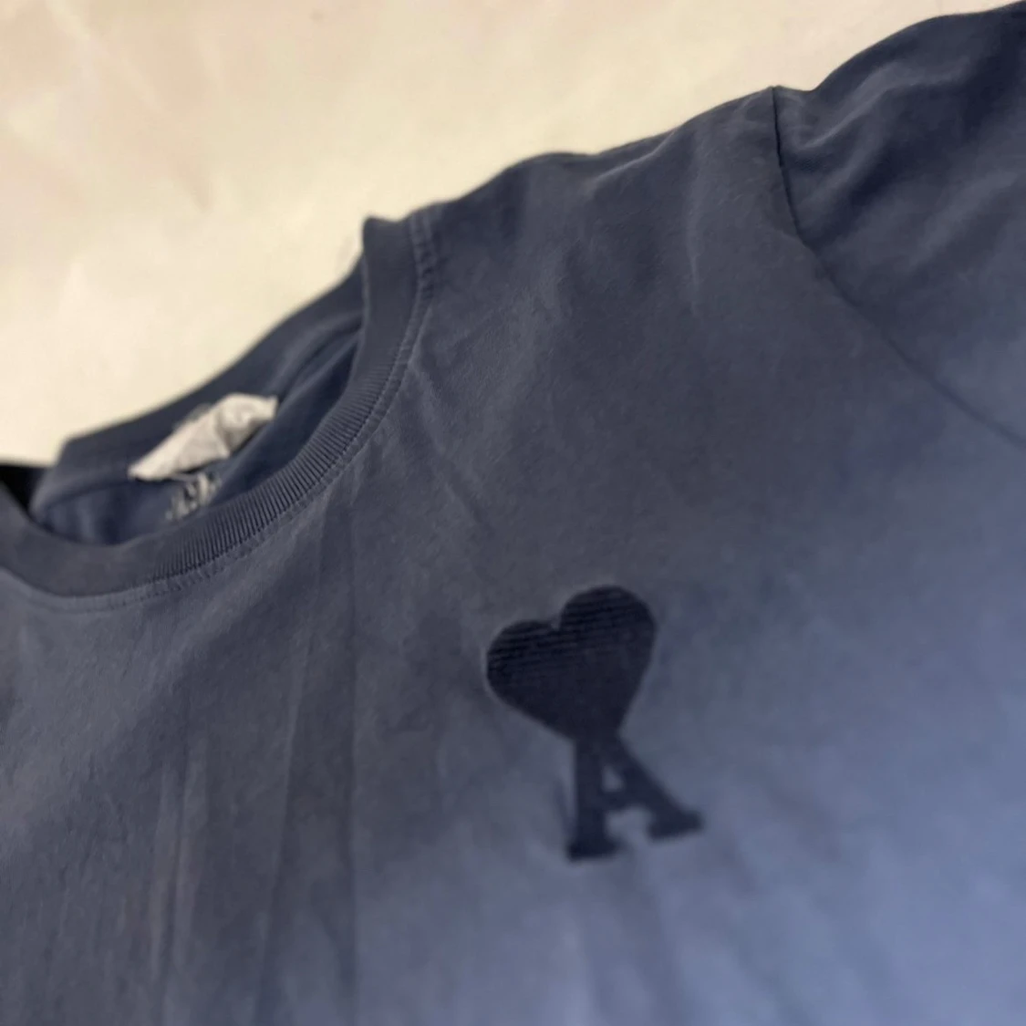 Snygg marinblå t-shirt från Ami Paris med broderad hjärtdetalj och bokstaven A på bröstet. Klassisk rund halsringning och korta ärmar. Tillverkad i mjuk bomull för en skön känsla hela dagen.