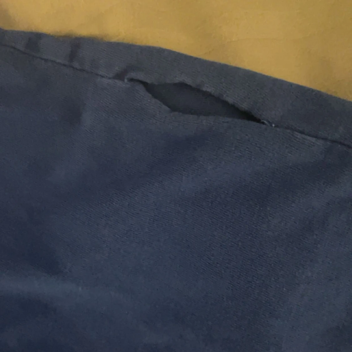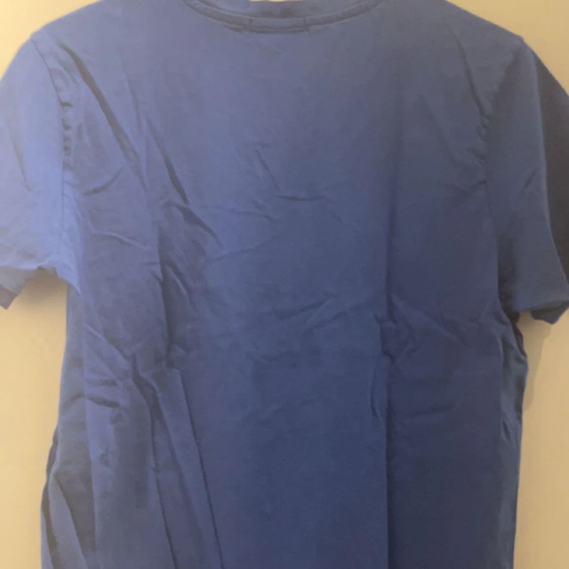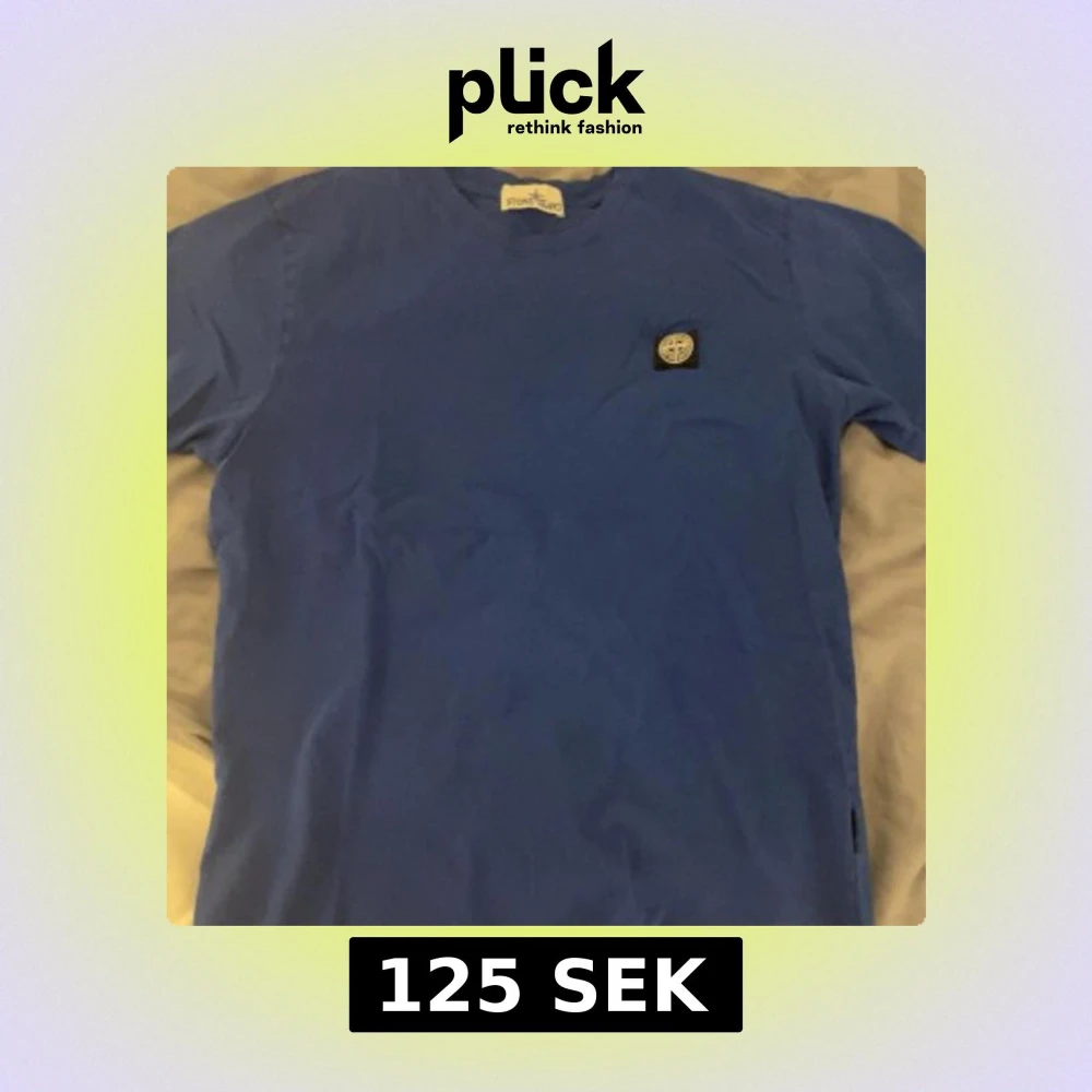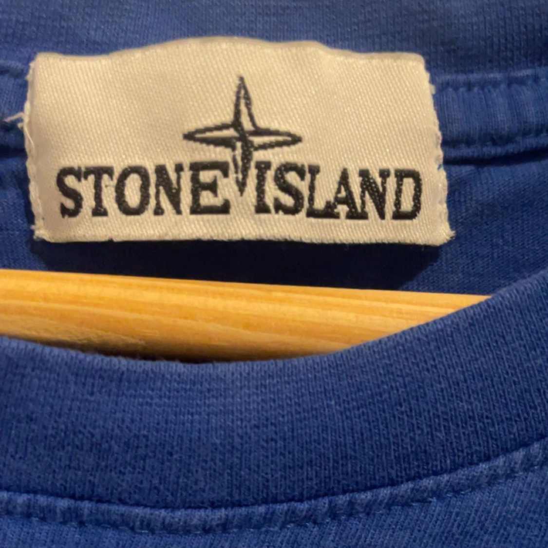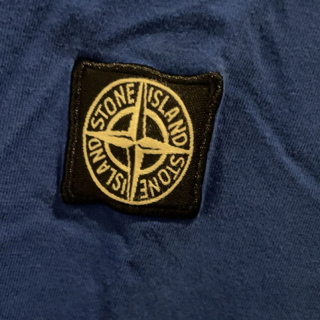 Säljer en blå t-shirt från Stone Island med klassisk logotyp-patch på bröstet. T-shirten har rund hals och korta ärmar. Perfekt för dig som gillar stilrena plagg med ikoniska detaljer. Sedan finns det ett håll på sidan som går att sy ihop rätt så lätt. ABS! Pris går att diskutera.