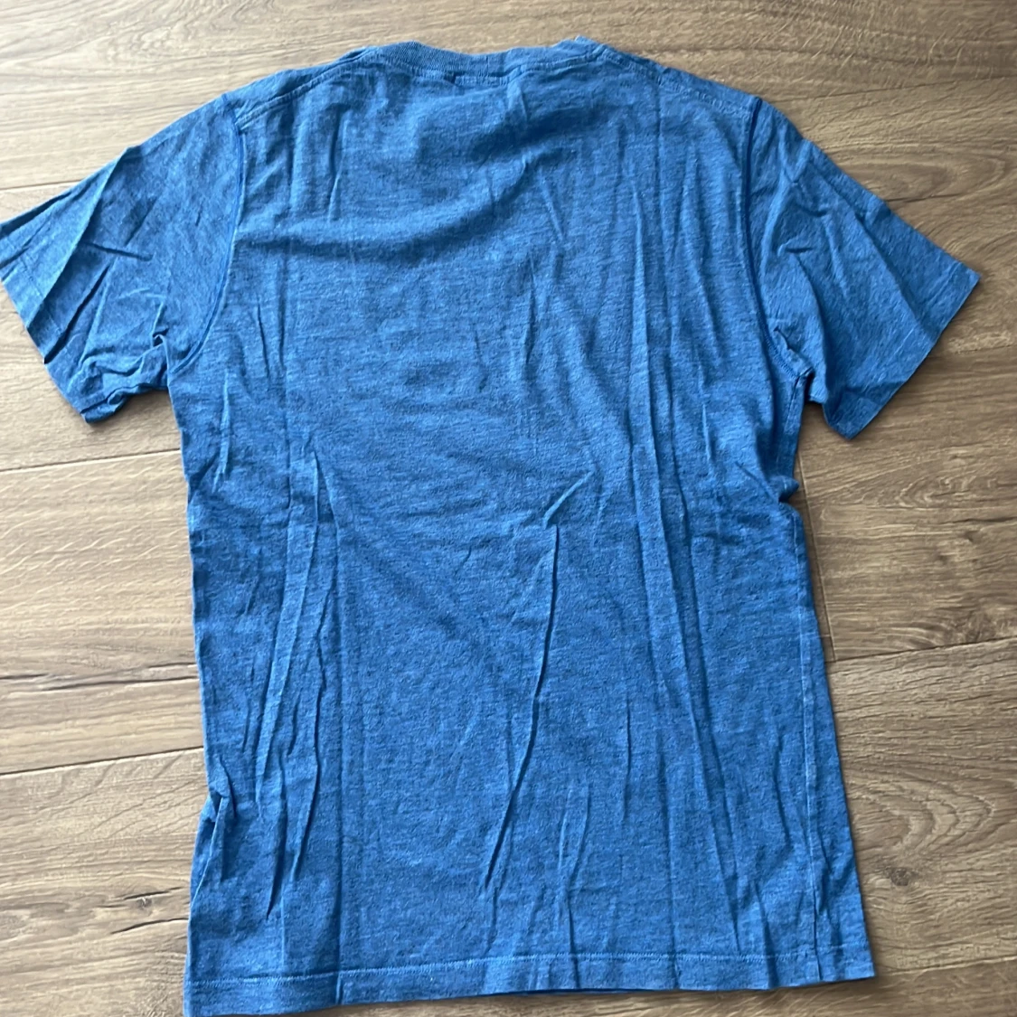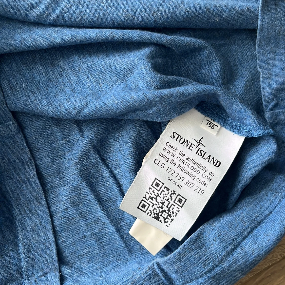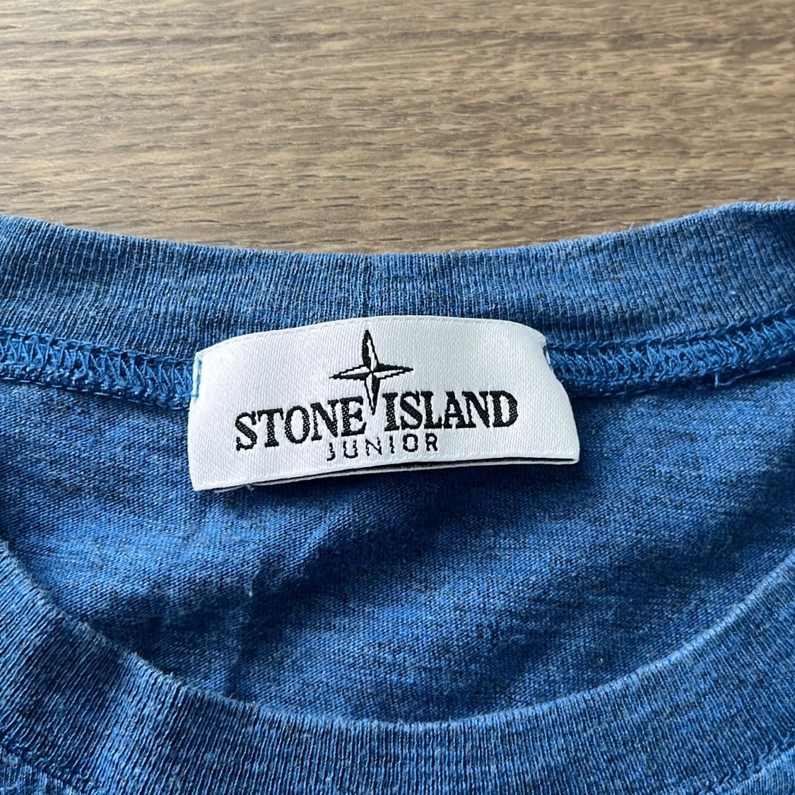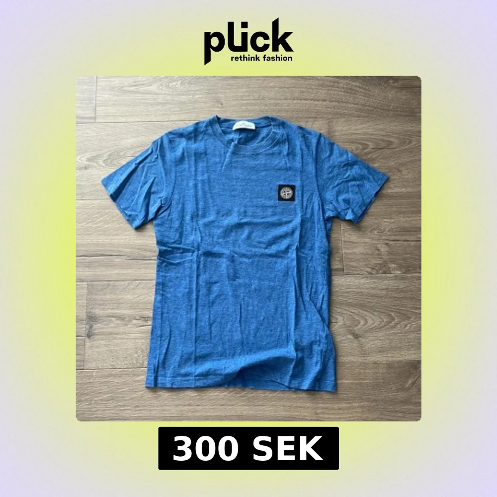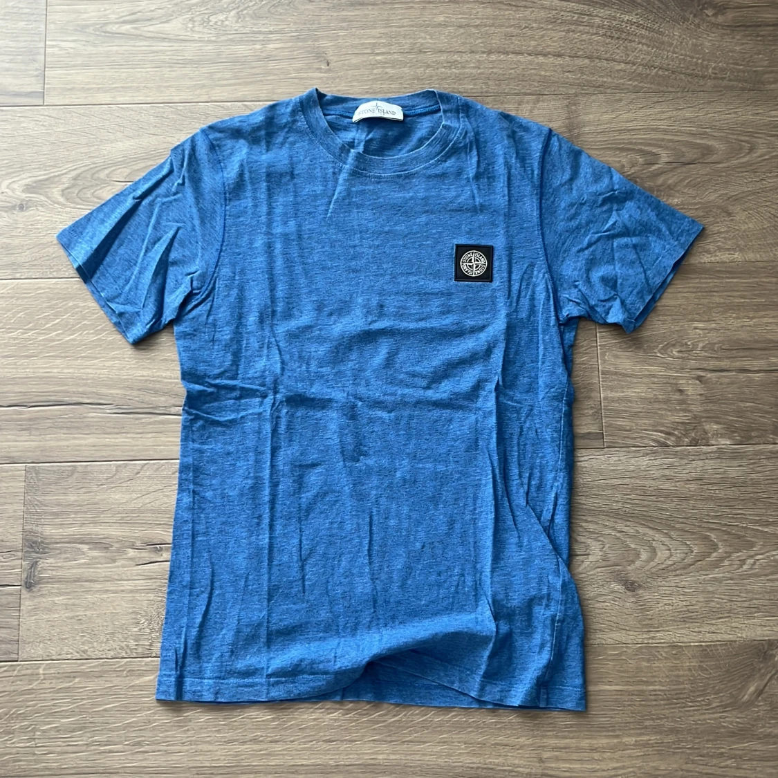 Säljer en blå t-shirt från Stone Island med klassisk logotyp-patch på bröstet. T-shirten har rund hals och är tillverkad i mjuk bomull. Använd ett par gånger men fortfarande bra skick, pris kan diskuteras vid snabb affär, storleken passar xs bra