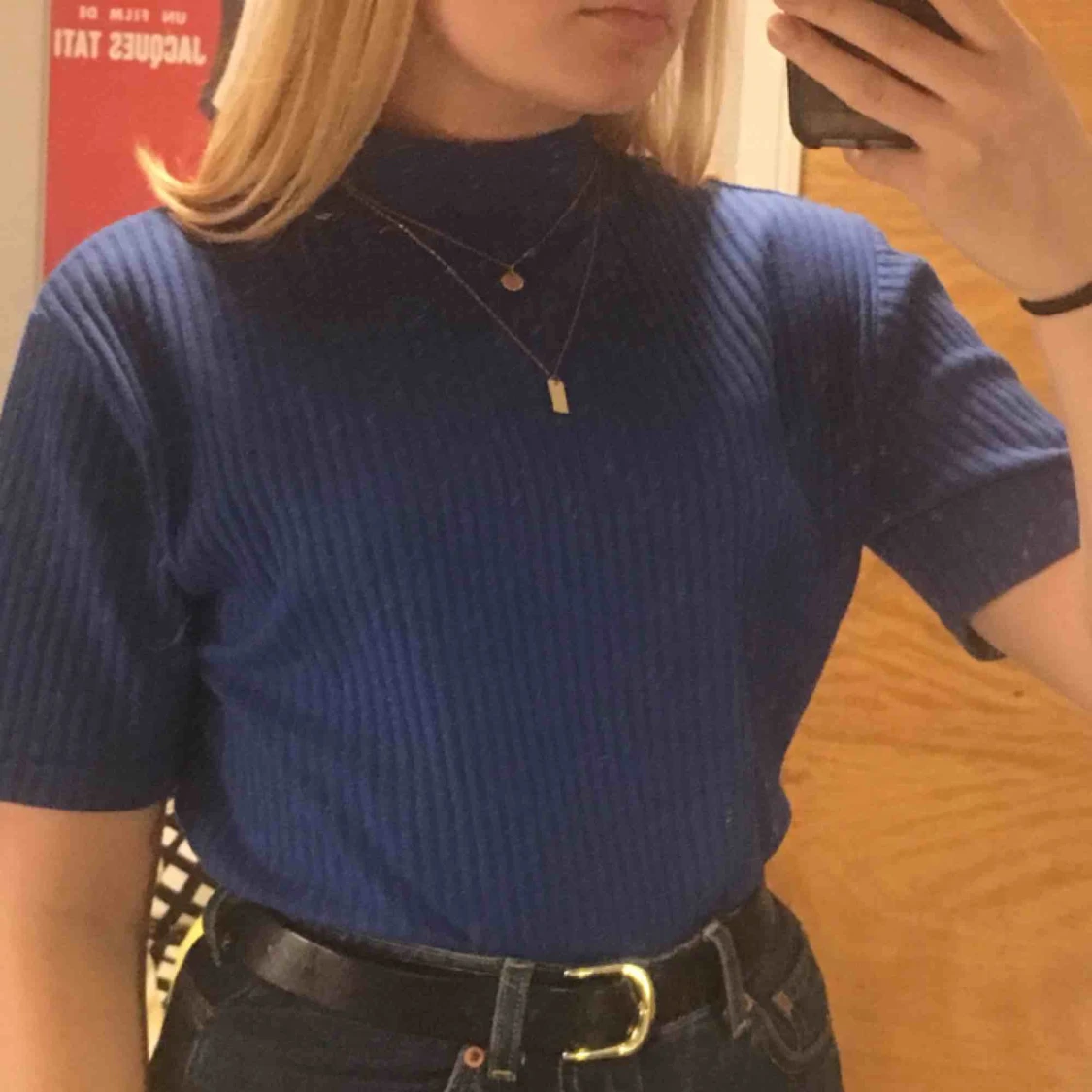 Blå, ribbad halvpolo köpt på second hand, köparen står för frakt :)