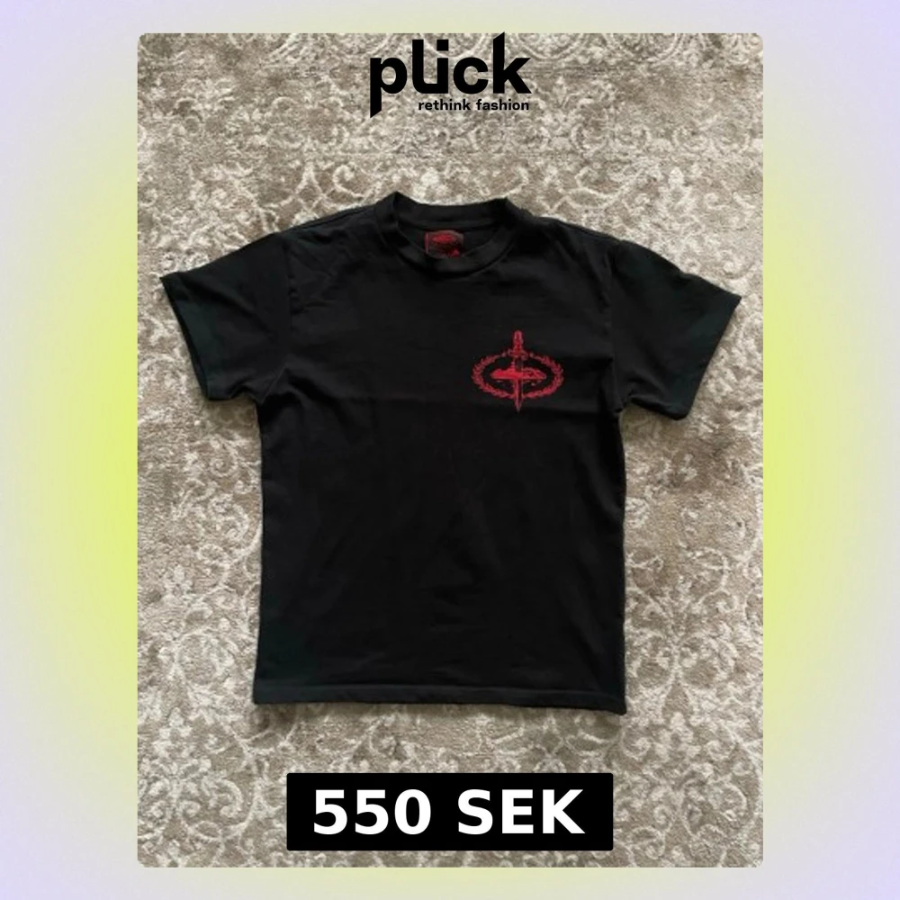 Svart t-shirt från Slaughter Gang med fet röd print på ryggen och mindre tryck framtill. Snyggt svärdmotiv och texten 'Slaughter Gang' i stor stil. Klassisk passform och gjord i mjuk bomull. Perfekt för dig som gillar streetwear och vill sticka ut.
