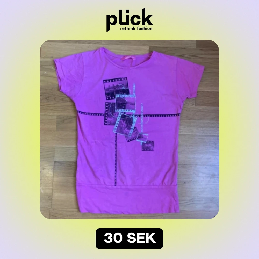 nice rosa t shirt med film tryck, använd, för barn men passar ändå s-m