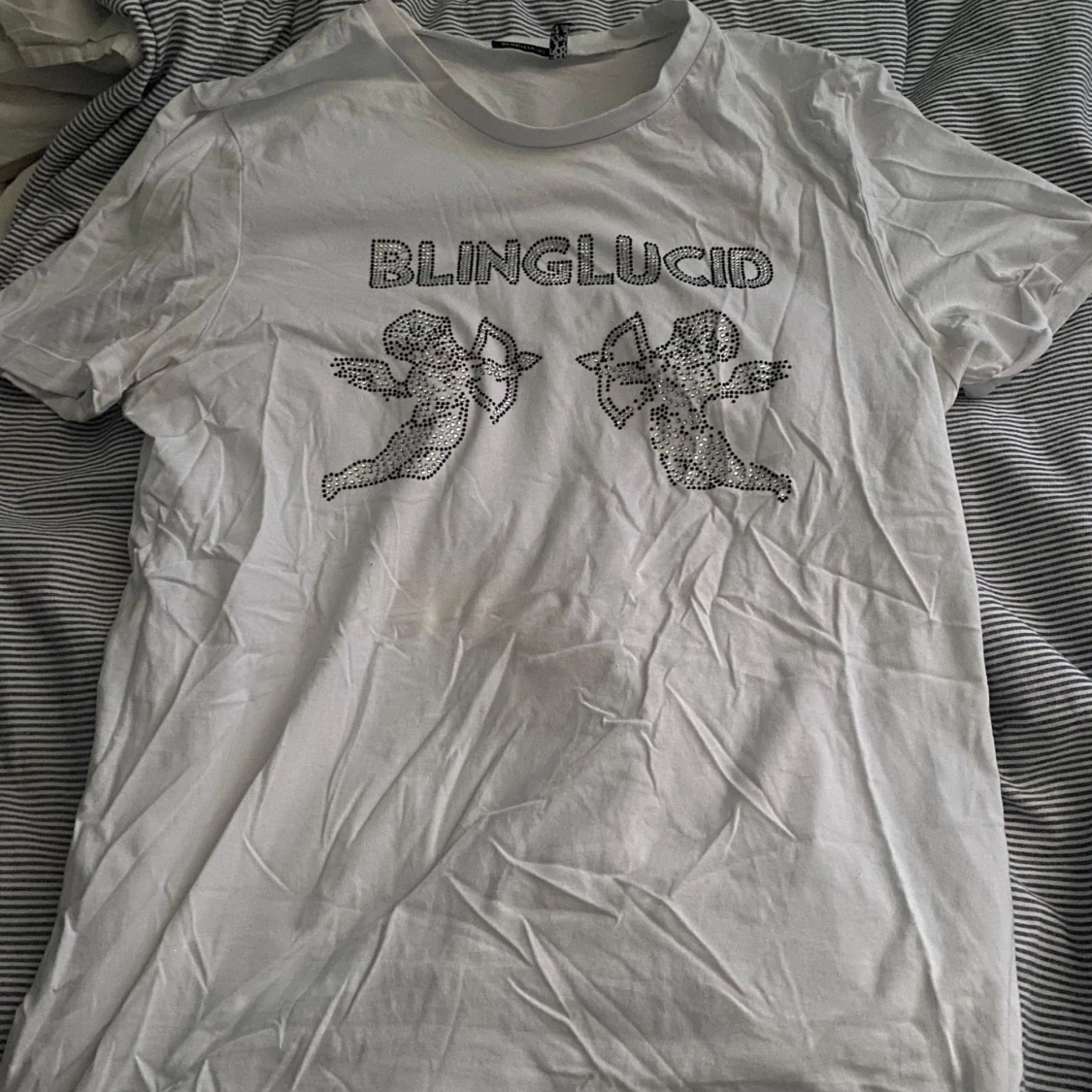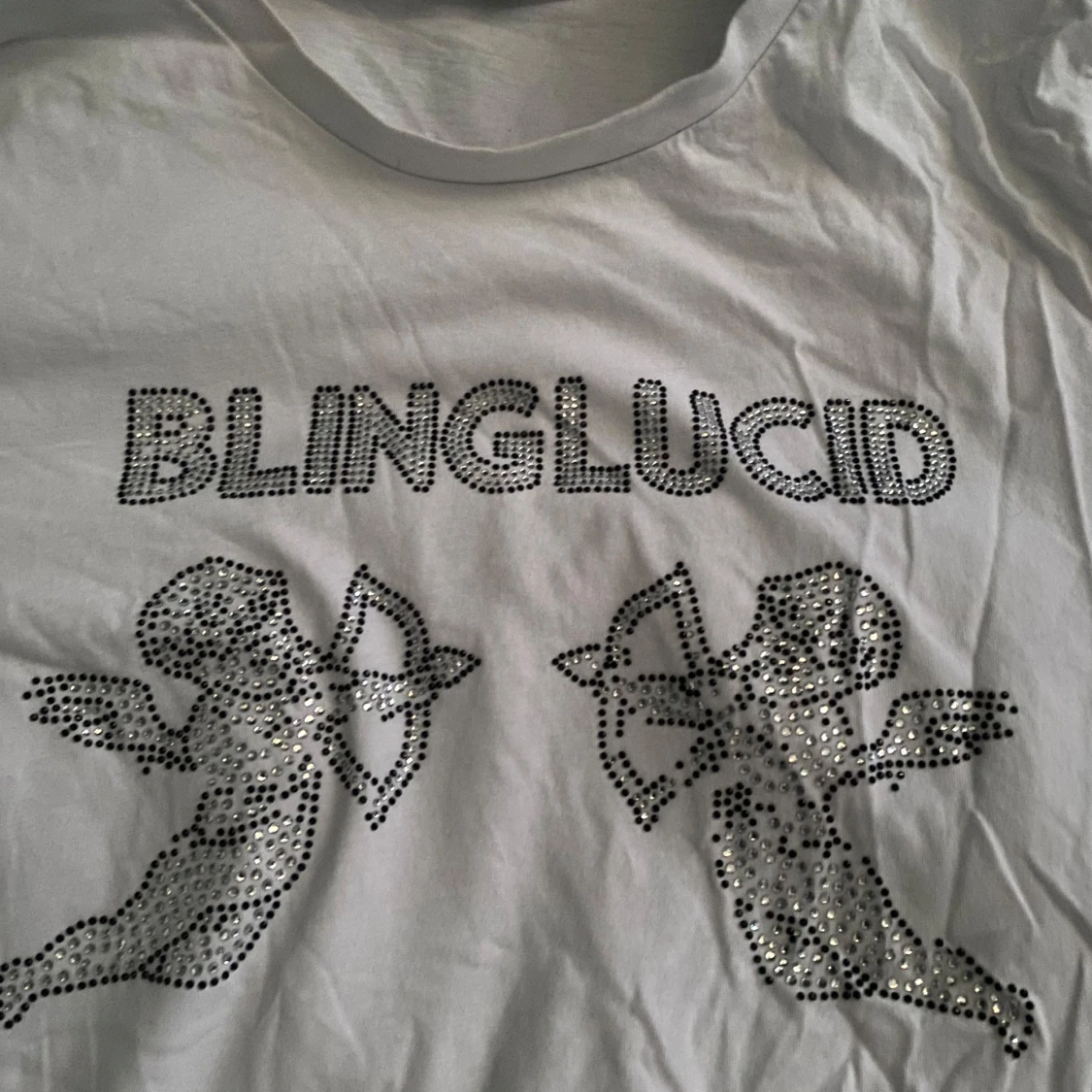 Säljer en vit t-shirt från Blinglucid! T-shirten är i väldigt bra skick o knappt använd.den är lite skrynklig för att den har legat i min garderob så länge.inga speciella märken eller något sånt.hör av er om ni har någon fundering priset kan diskuteras.