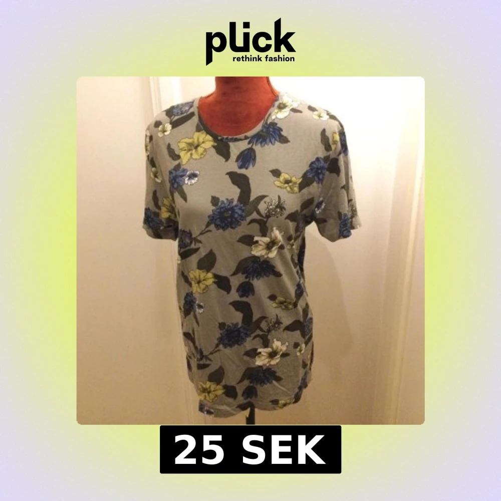 Blommig t-shirt i grått och blått M