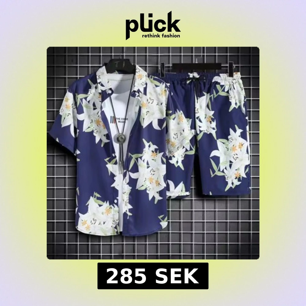 Blommiga shirt och shorts i marinblått