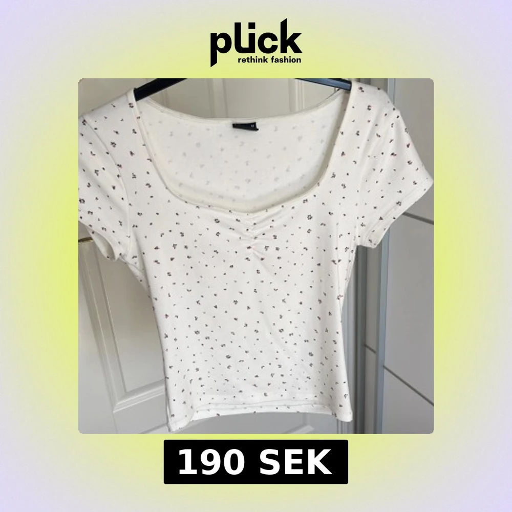 Supersöt vit topp från Gina Tricot med små blommor i rosa och mörkgrön. Toppen har korta ärmar, lätt rynk vid bysten och en snygg, lite djupare rundad urringning. Perfekt för dig som gillar en feminin och fräsch stil. Väldigt strechig!💞 Passar även S!