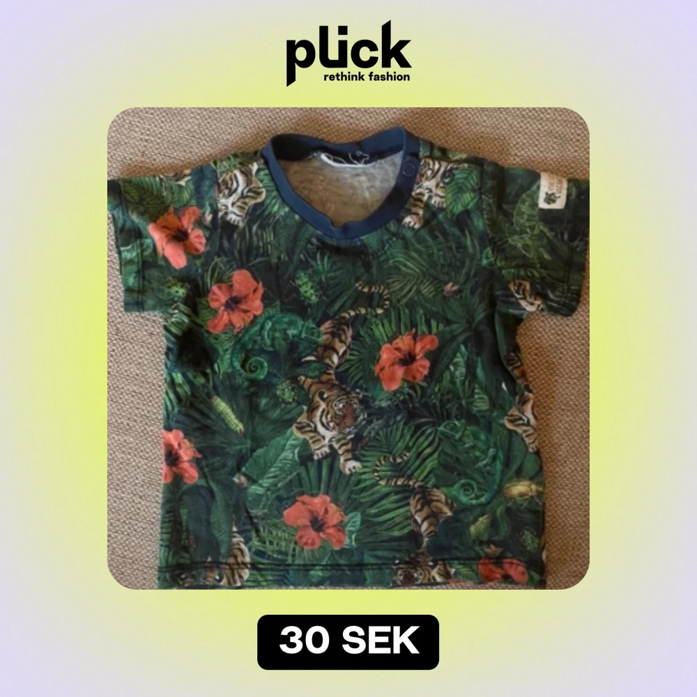 En t-shirt i storlek 74, använd fåtal gånger så i mycket bra skick, inget att anmärka på förutom att lapparna är bortklippta