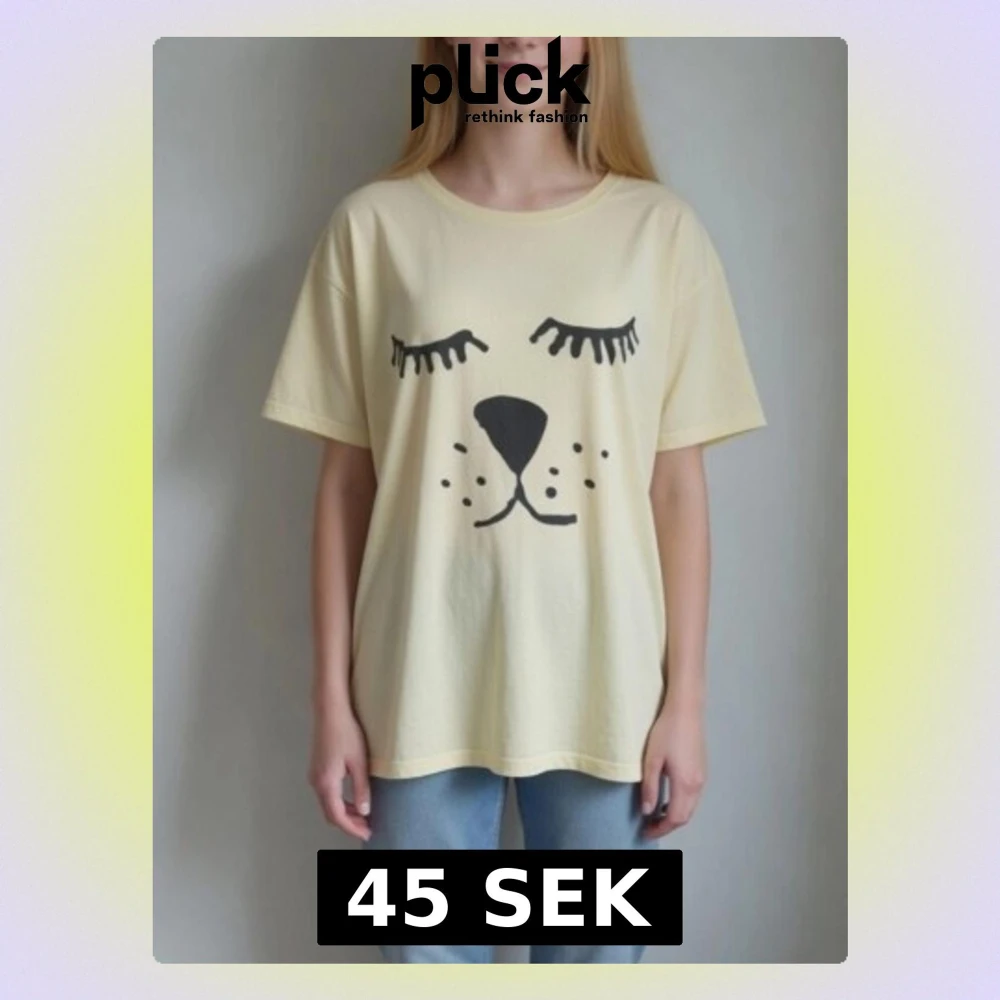 Ljusgul topp/Tshirt med djuransikte. Bomull. Luftig/sval i tunnare, mjuk bomull Strlk: XS-SMALL. Modellen visar ungefär hur den ser ut på.