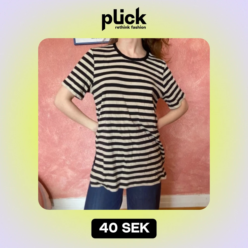 Snygg randig rejäl lång T-shirt i gott skick. Snabb affär prioriteras! Hon på bilden är 160 cm och en xs/s men som ni ser oversized, passar alla storlekar