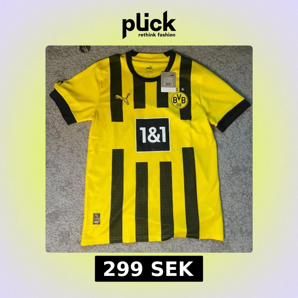 Borussia Dortmunds officiella hemmatröja från Puma med klassiska svarta ränder på gul botten. Tröjan har klubbmärke och sponsortryck på bröstet, svart krage och svarta muddar. Materialet är lätt och andas, perfekt för match eller träning.
