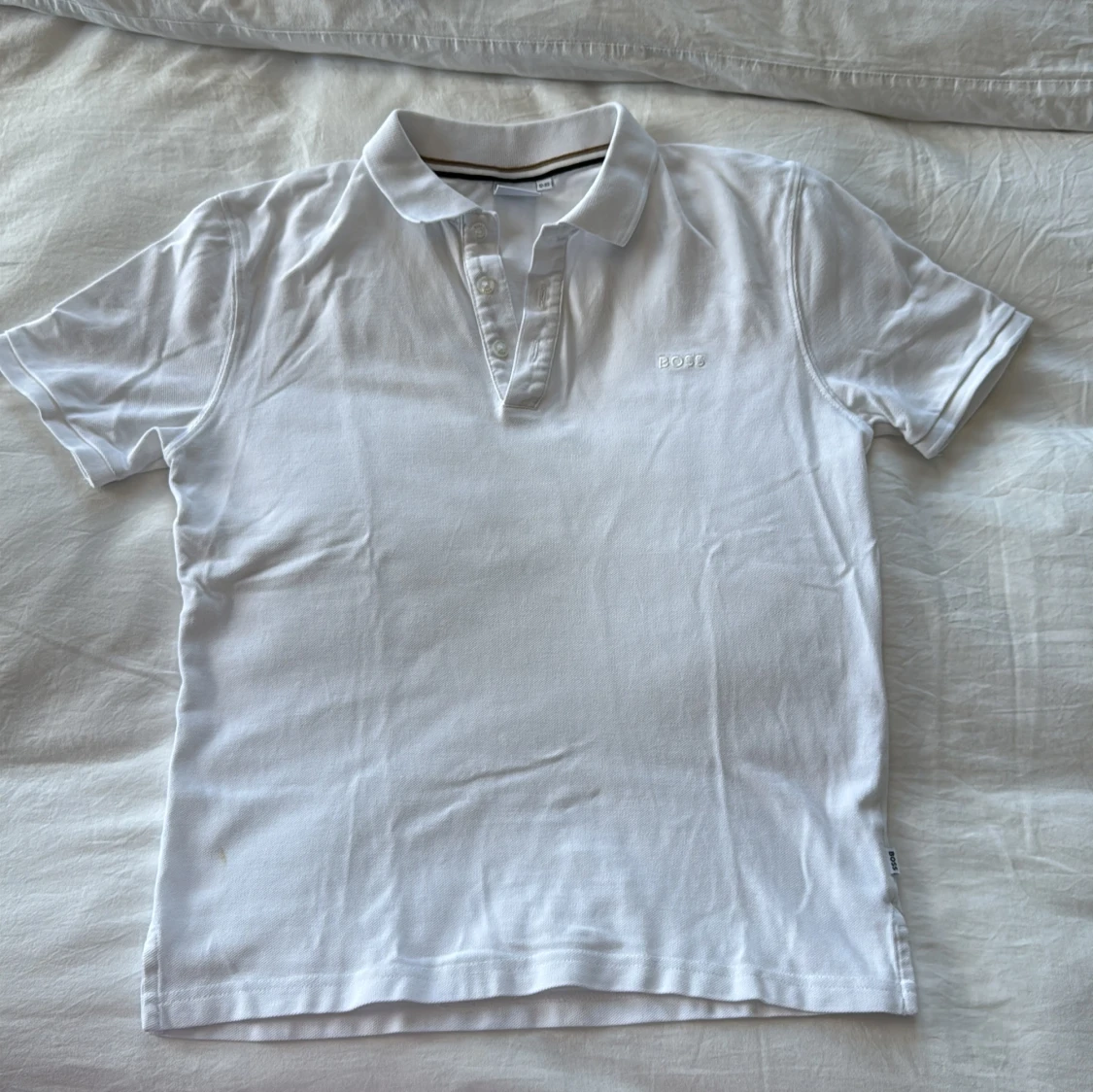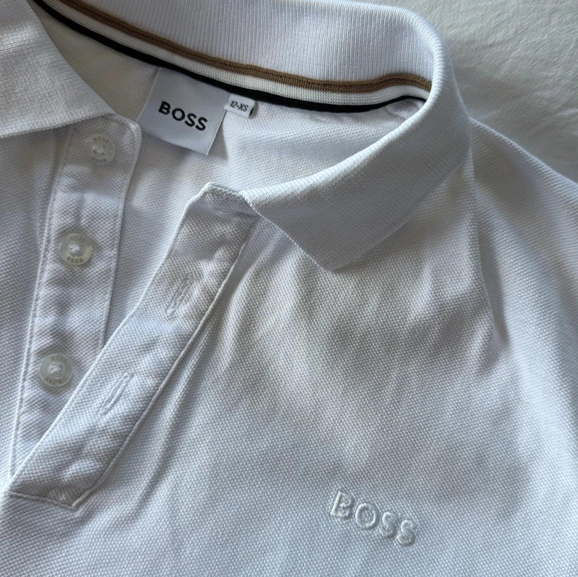 Fräsch vit pikétröja från BOSS med klassisk krage och tre knappar framtill. Diskret BOSS-logga broderad på bröstet. Tillverkad i 100% bomull för skön känsla och snygg passform. Perfekt till jeans eller shorts för en clean look.