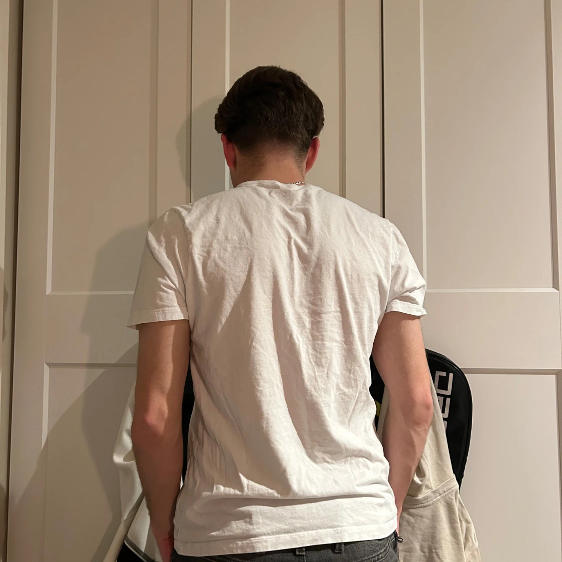 Säljer en stilren vit t-shirt från Boss med v-ringning. T-shirten har korta ärmar och en diskret logga på bröstet. Perfekt för en clean och enkel look.