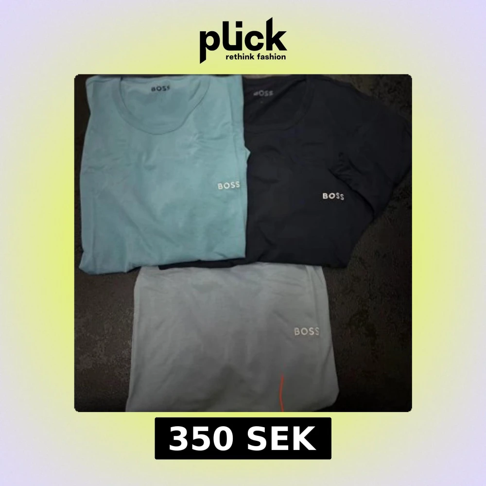 Säljer tre stilrena t-shirts från BOSS med diskret logga på bröstet. Färgerna är ljusblå, svart och ljusgrå. Alla har rund hals och klassisk passform, perfekta till jeans eller shorts. Materialet känns mjukt och skönt mot huden.