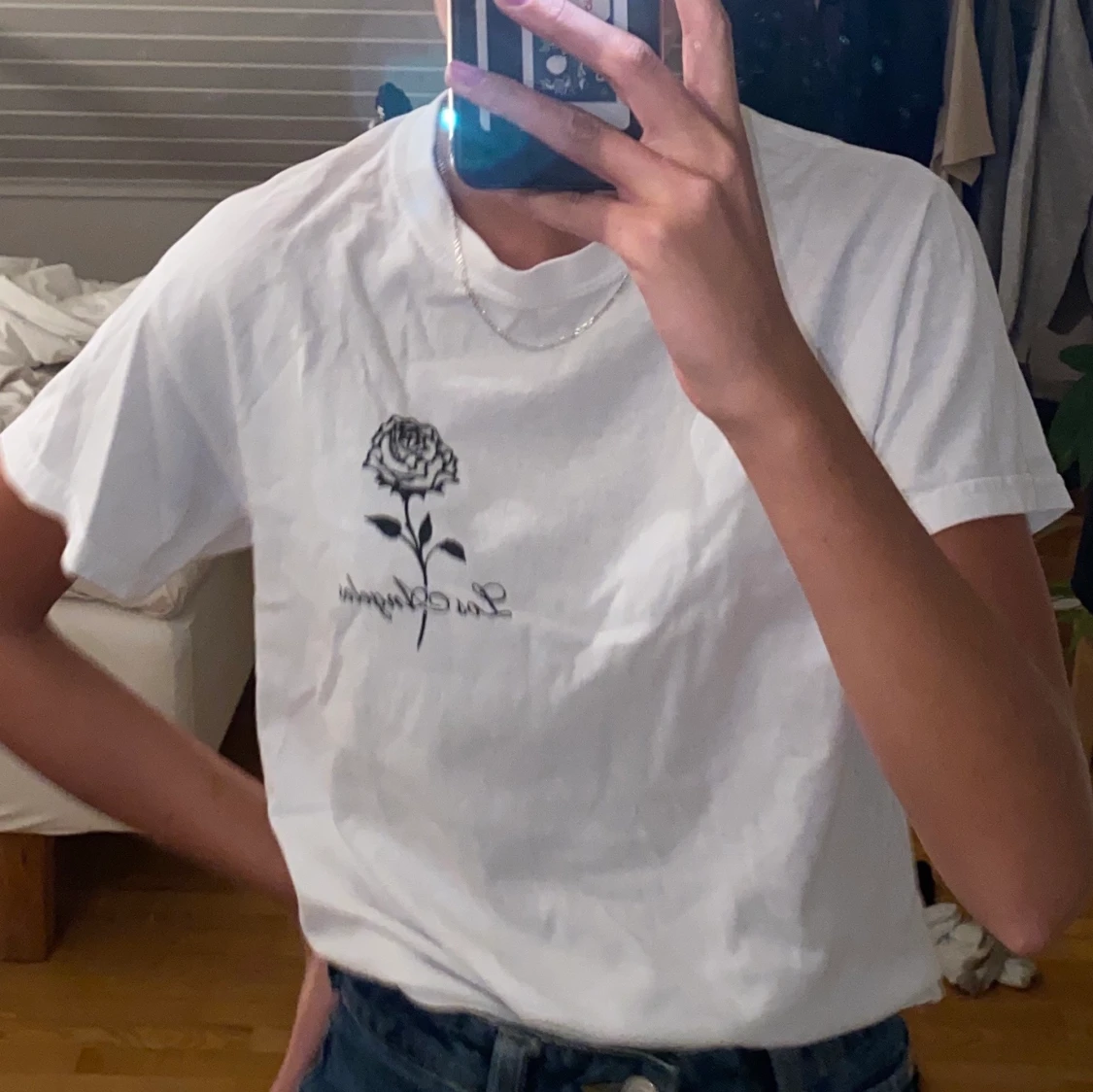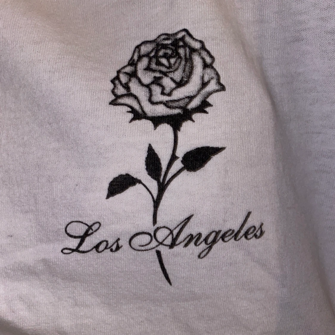Minimalistisk t-shirt med tryck köpt på brandy melville i lite tjockare lyxigare material. Motivet är en ros och texten ”los angels”. Använd men bra skick! Du betalar frakten