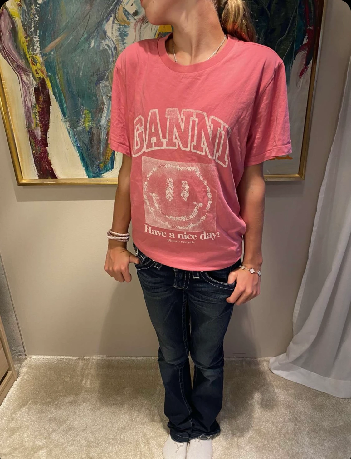 En jätte din rosa GANNI tröja med vita detaljer.Jätte könt MATIRIAL och jätte bra skick!💘💘💘