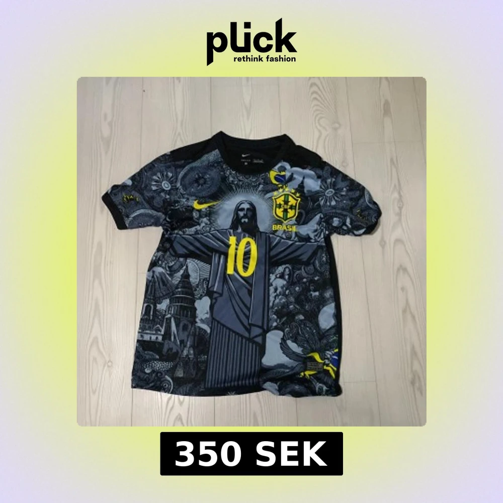 Snygg Brasilien fotbollströja från Nike med Neymar Jr och nummer 10 på ryggen. Tröjan har ett unikt mönster med grå och svarta nyanser samt gula detaljer. Perfekt för fans av det brasilianska landslaget.
