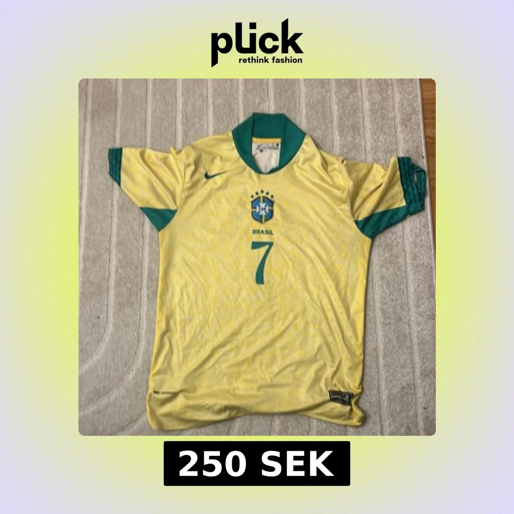 Gul Brasilien fotbollströja från Nike med gröna detaljer, nummer 7 och VINI JR. på ryggen. Klassisk krage, Dri-FIT-material som andas och officiellt landslagsmärke på bröstet. Perfekt för dig som älskar fotboll och vill sticka ut på läktaren eller planen.