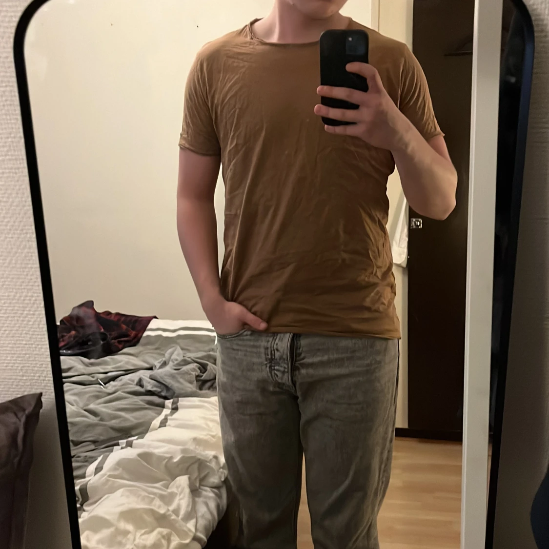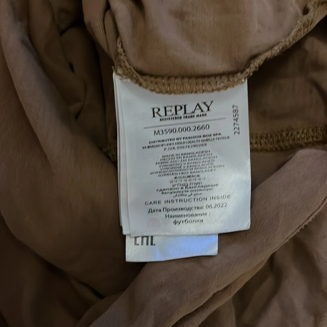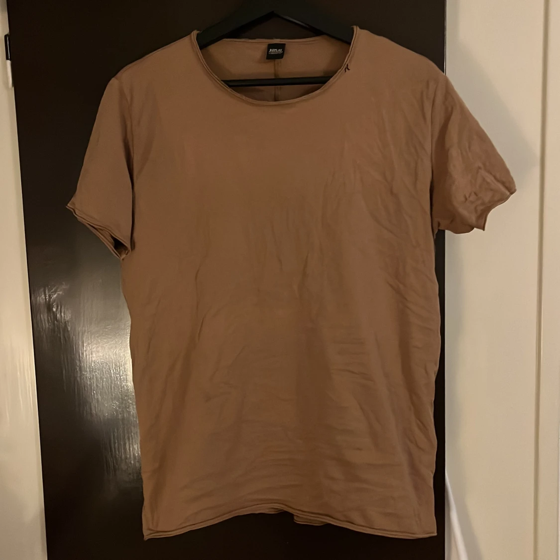 Säljer en brun t-shirt från Replay. Den har en enkel design med korta ärmar och rund hals. Perfekt för en avslappnad stil.