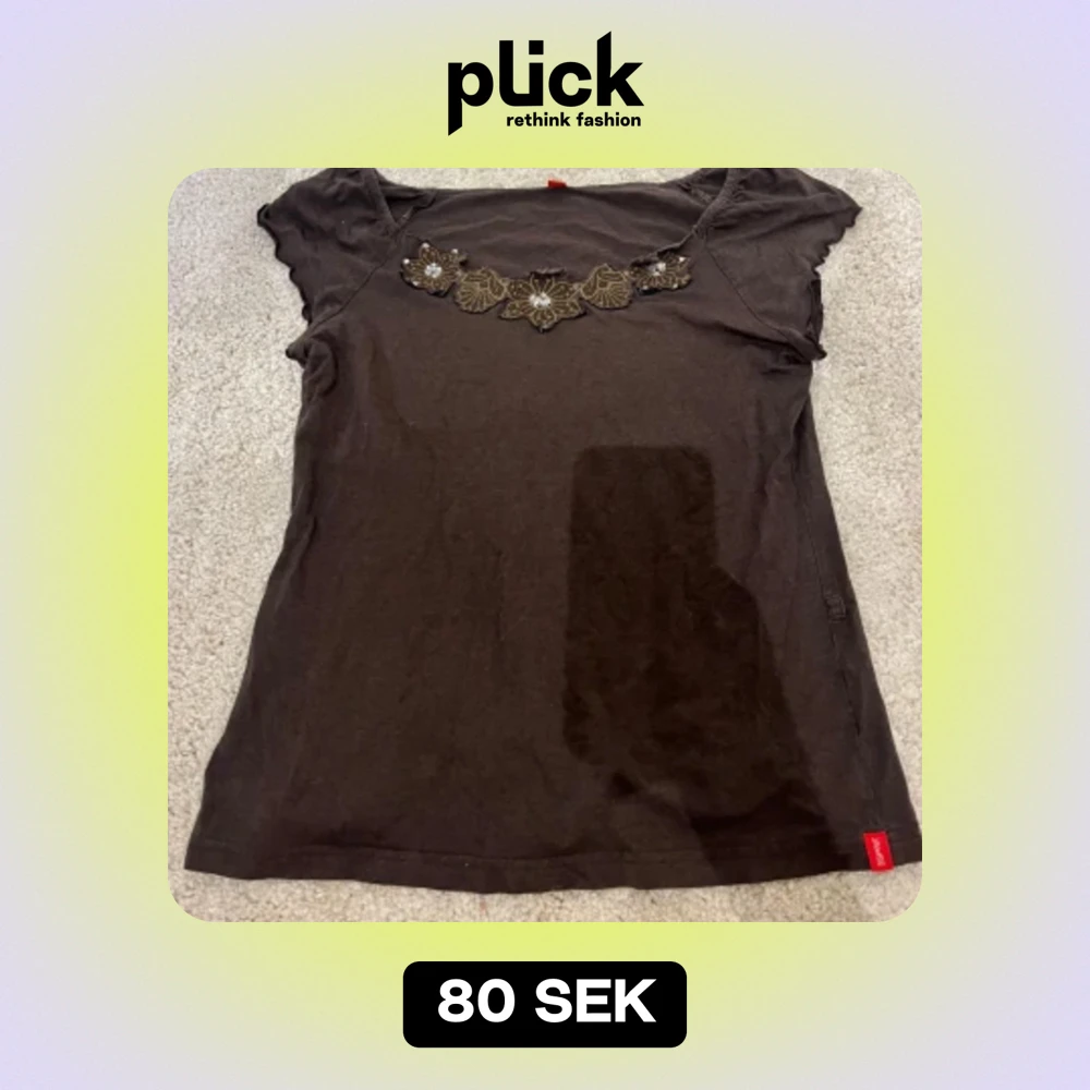 En jĂ€tte fin brun T-shirt med glitter och blom detaljer đ