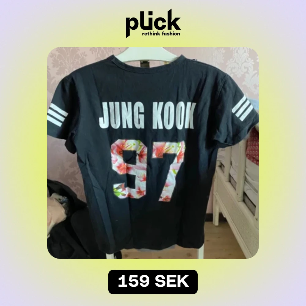 Säljer denna super snygga BTS t-shirten med medlemmen Jungkook’s namn och födelseår på ryggen.🌟 Kommer tyvärr inte ihåg vart den är köpt men den är i storlek S och väldigt fint skick.🫶🏻