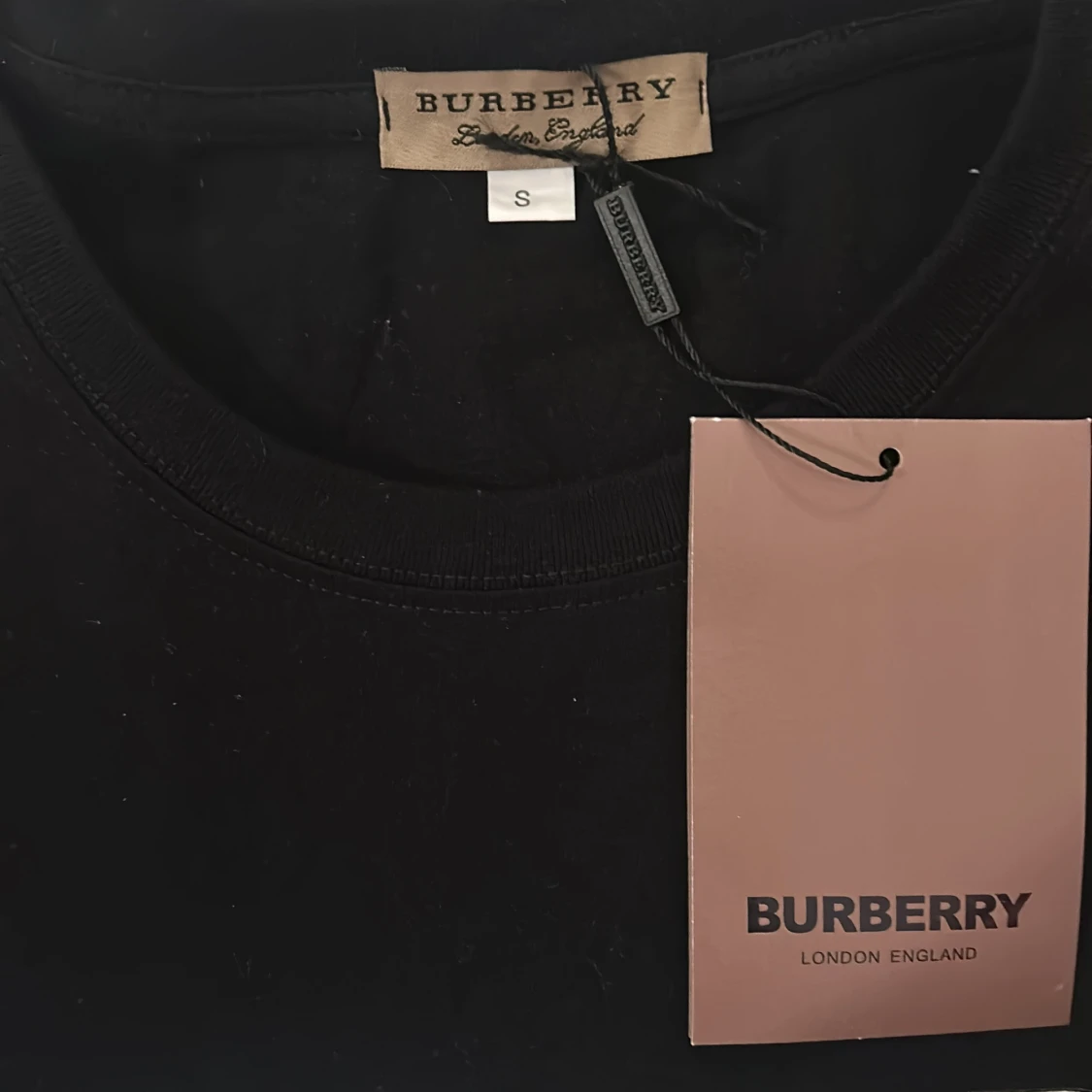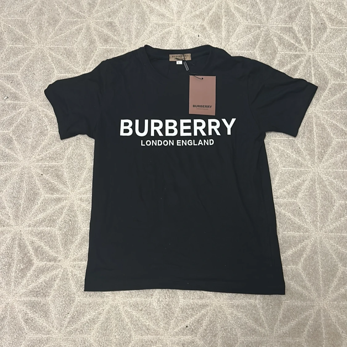 Svart t-shirt från Burberry i 100% bomull med vit Burberry London England-logga framtill. Klassisk passform med korta ärmar och rund halsringning. Perfekt för dig som gillar stilrena och ikoniska plagg.