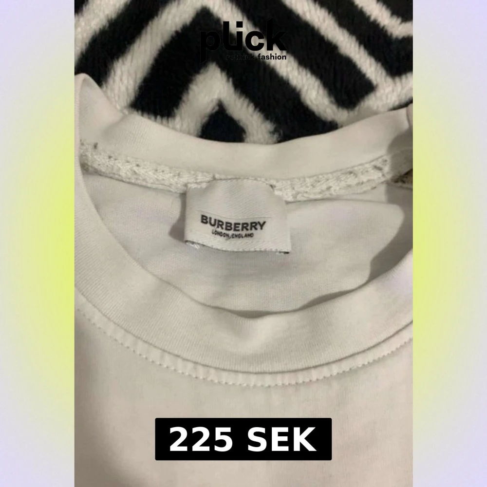 Säljer en fräsch vit t-shirt från Burberry med klassiska rutiga paneler på ärmarna i beige, svart, rött och vitt. T-shirten har rund hals och korta ärmar, tillverkad i mjuk bomull. Perfekt för dig som gillar stilrena designer med en touch av lyx.