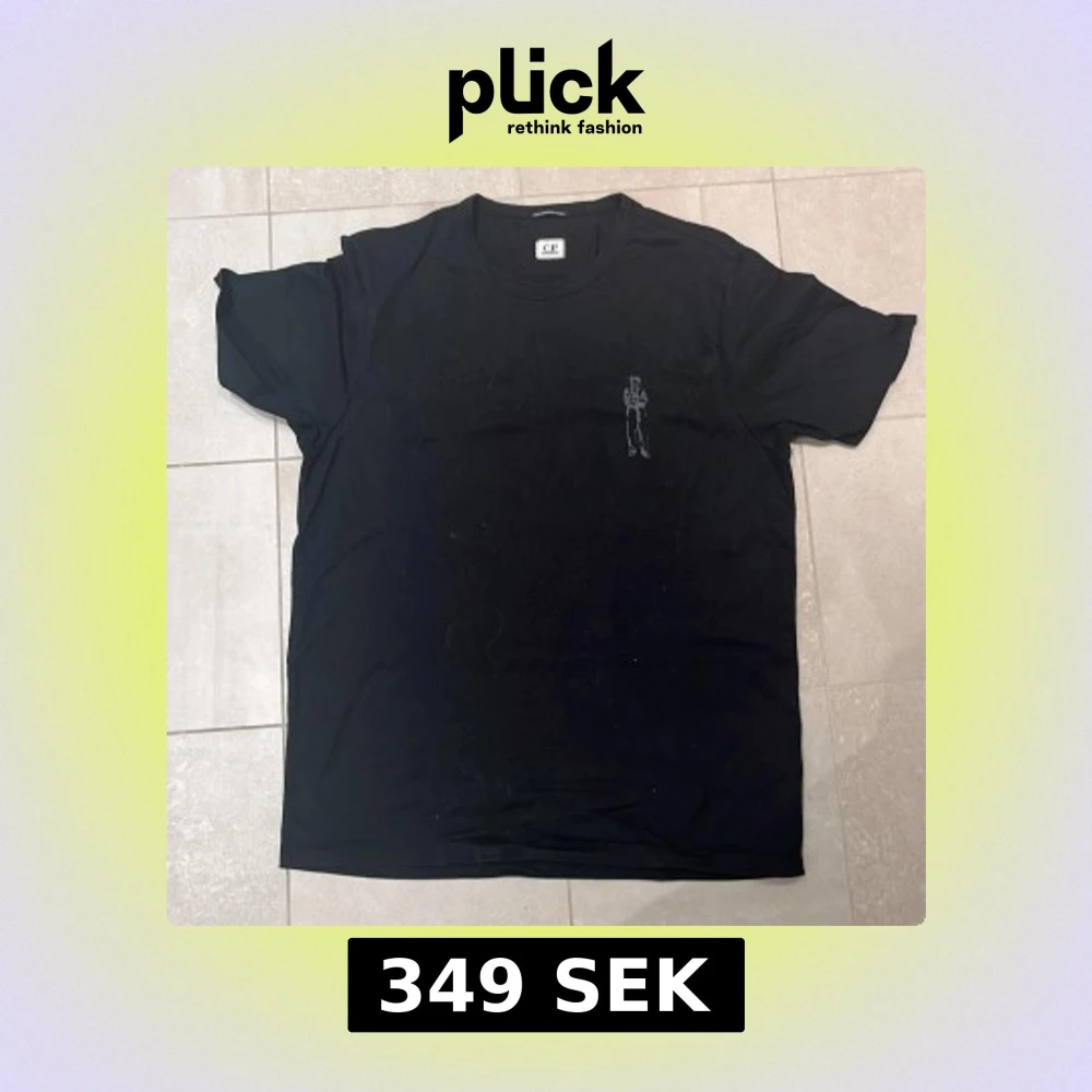 Svart t-shirt från C.P. Company i 100% merceriserad bomull. Framtill finns ett litet tryck av en figur och på ryggen ett större tryck med samma motiv samt loggan. Klassisk rund hals och korta ärmar. Snygg och stilren design med coolt print.