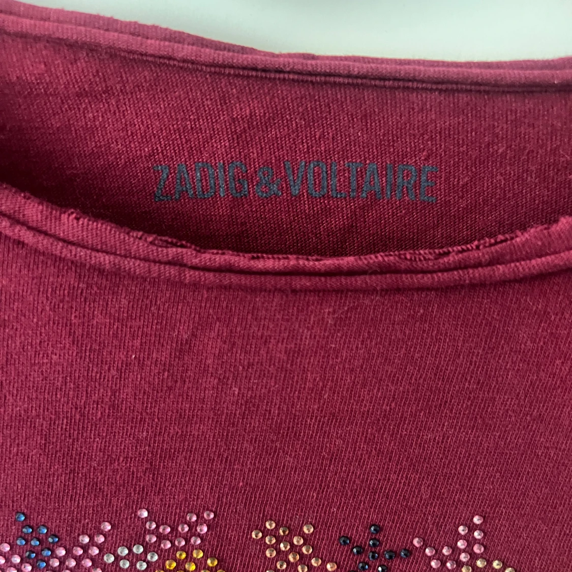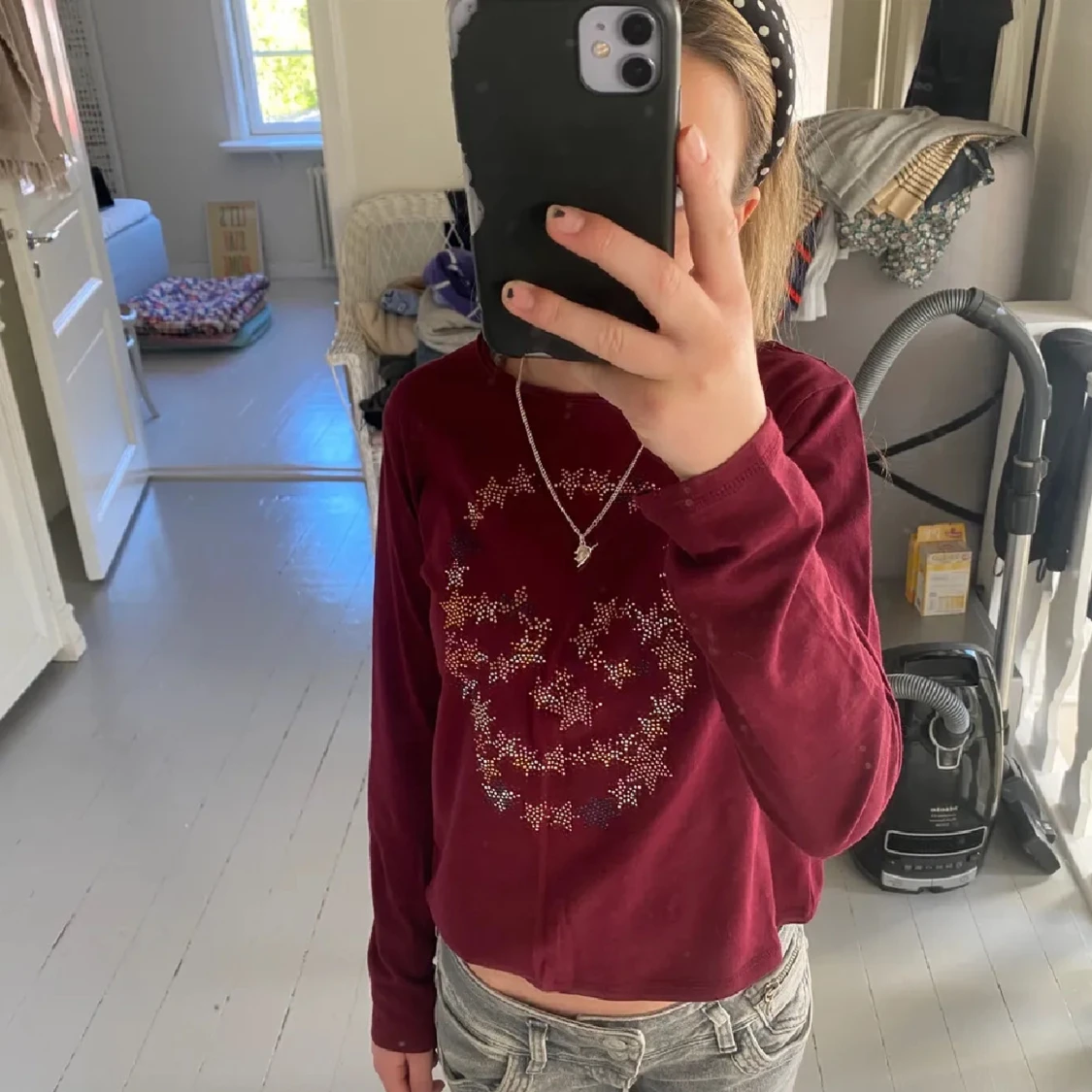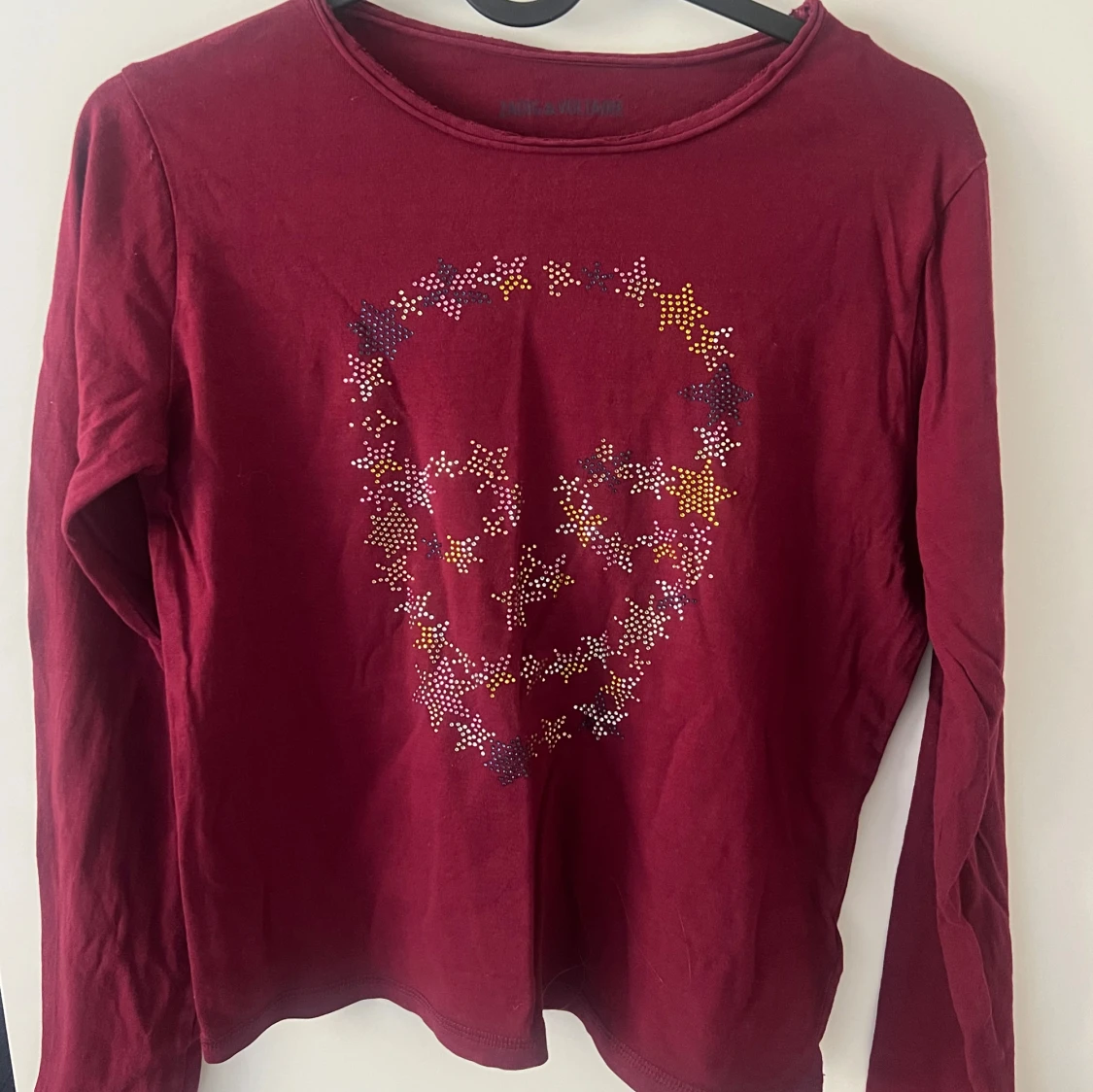 Vinröd långärmad t-shirt från Zadig & Voltaire med ett coolt tryck i små diamanter. Tröjan är i barnstorlek men passar dig som har allt från XS-S-M. (ALLA BILDER MED PERSONER ÄR LÅNADE)❤️💀