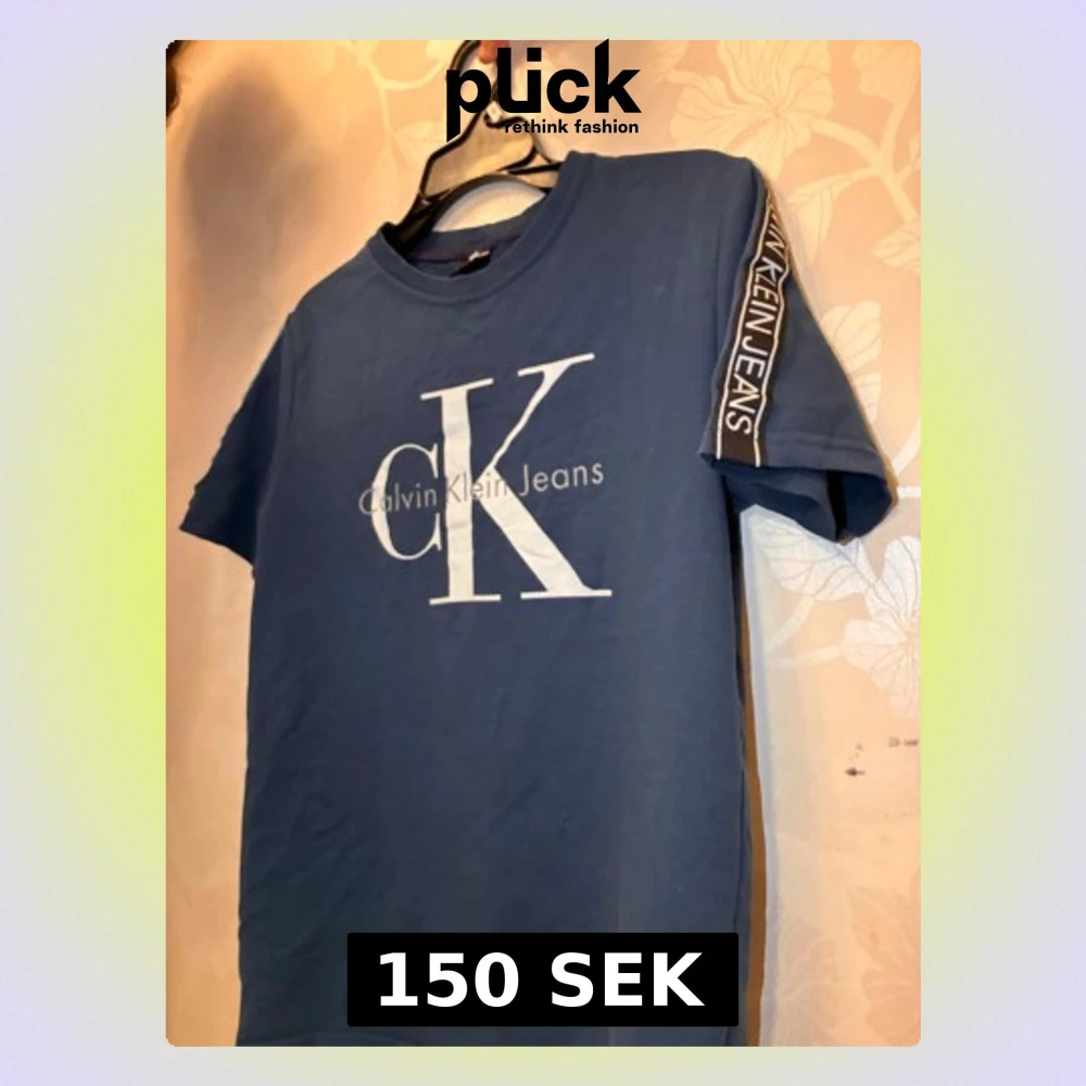 Snygg blå t-shirt från Calvin Klein Jeans med stort CK-tryck i vitt på bröstet och logoband på ärmarna. Klassisk rund hals och korta ärmar. Perfekt för dig som gillar stilrena och trendiga märkesplagg. Storlek kan vara från XS - M. Priset kan diskuteras!