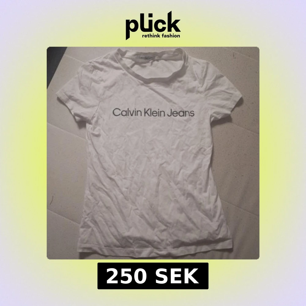 Helt oanvänd. Vit t-shirt från Calvin Klein Jeans i klassisk modell med rund hals och korta ärmar. Nypris runt 350 mitt pris 250 Stor logga tryckt framtill i svart. Tillverkad i mjuk bomull som känns skön mot huden. Perfekt för en clean och stilren look.
