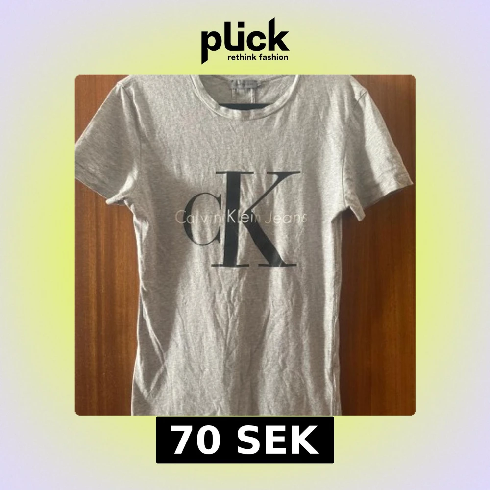 Snygg grå t-shirt från Calvin Klein Jeans i storlek XS. Klassisk modell med korta ärmar och stort CK-tryck framtill. Tillverkad i mjuk bomull som känns skön mot huden. Perfekt för en avslappnad och trendig look.