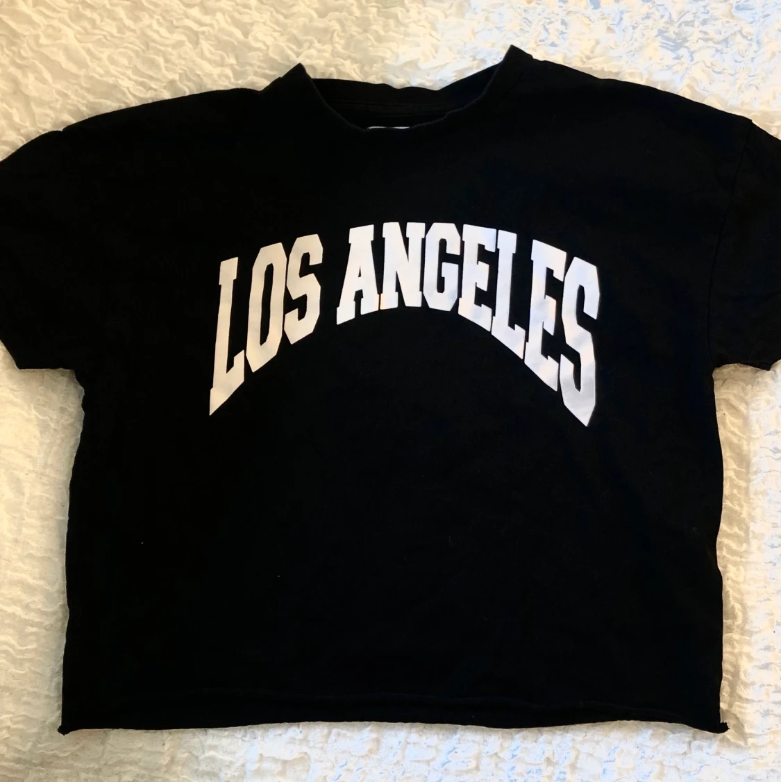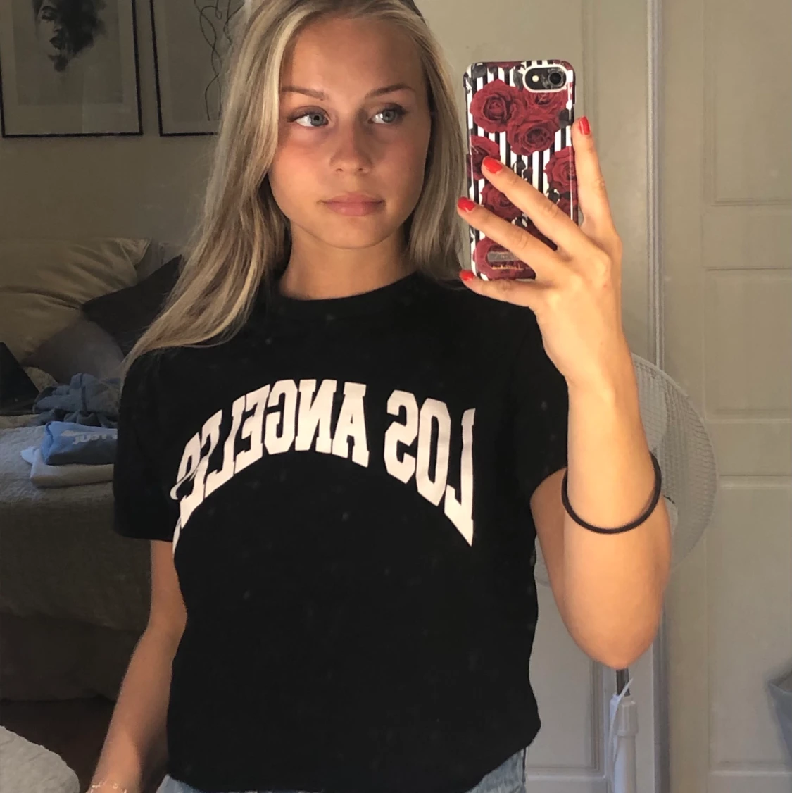 En svart kroppad t-shirt med tryck från Carlings. Använd fåtal ggr. Storlek xs <3