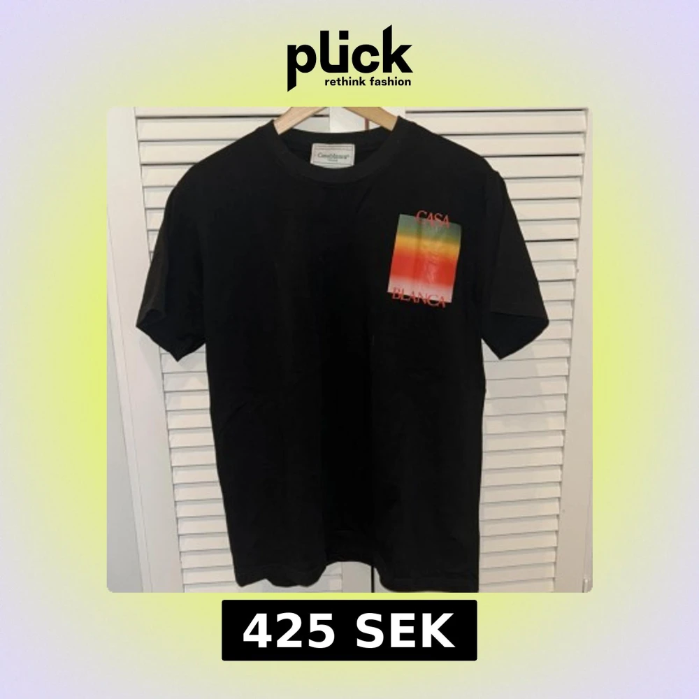 Svart t-shirt från Casablanca med färgglad grafisk print i grönt, gult, rött och vitt på bröstet och ryggen. Storlek M men sitter som en L Tröjan är i utmärkt skick och har inga defekter!🤩‼️Vid funderingar är det bara att höra av sig📲📲