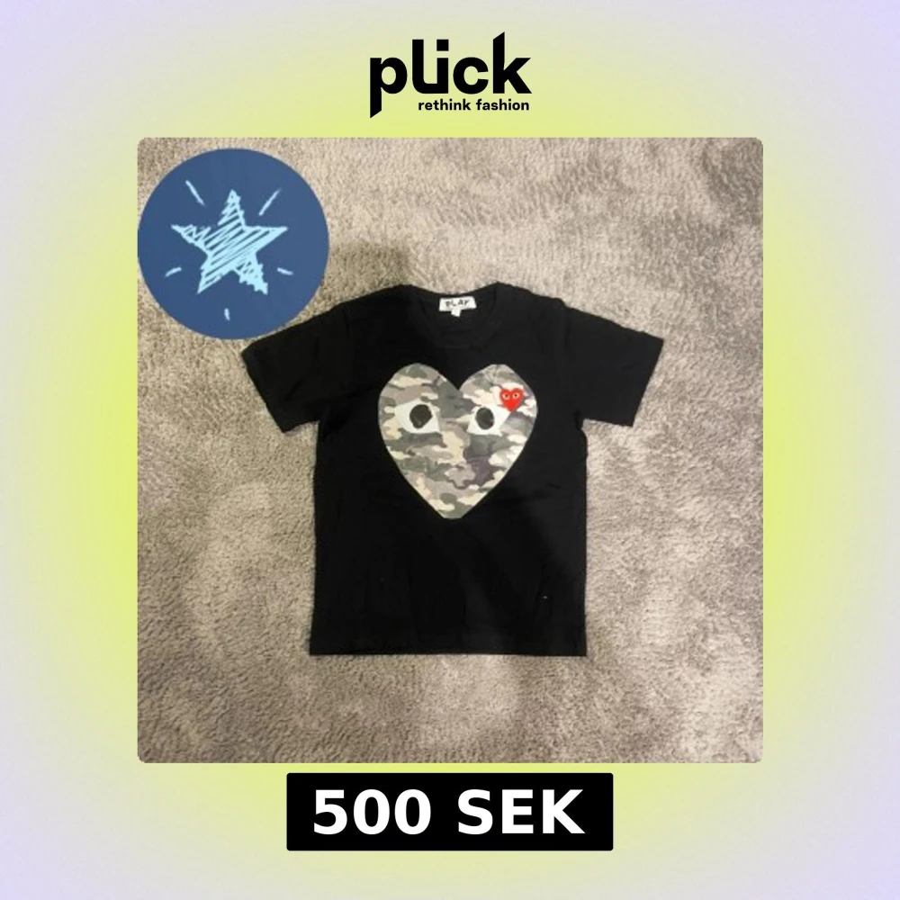 Snygg svart t-shirt från CDG. Riktigt sällsynt modell med camo som är svår att hitta! Riktigt bra skick och passar någon mellan 170-177, super bra pris