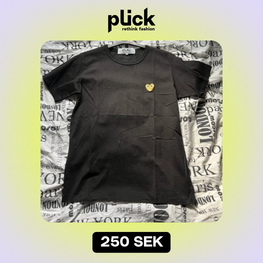 Säljer denna cdg t shirten som jag fick i present då den ej används! Strl L sitter som en M, säljes billigt pga att den är sydd i nacken vid tagen ( bild 4)