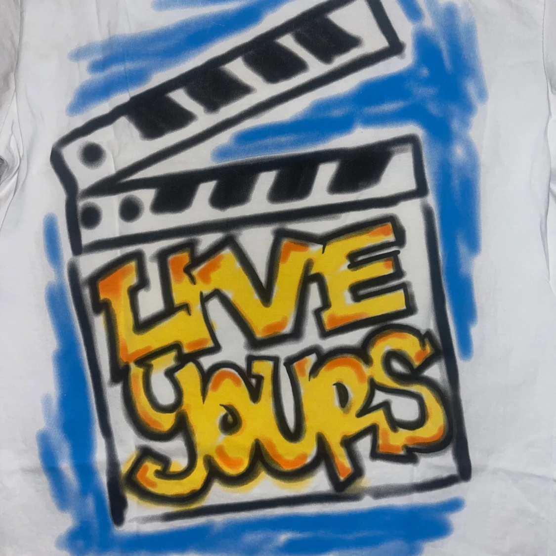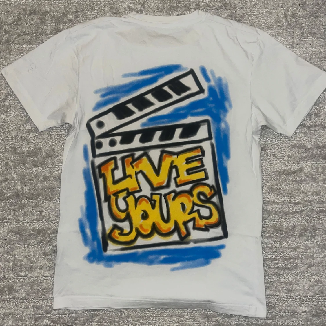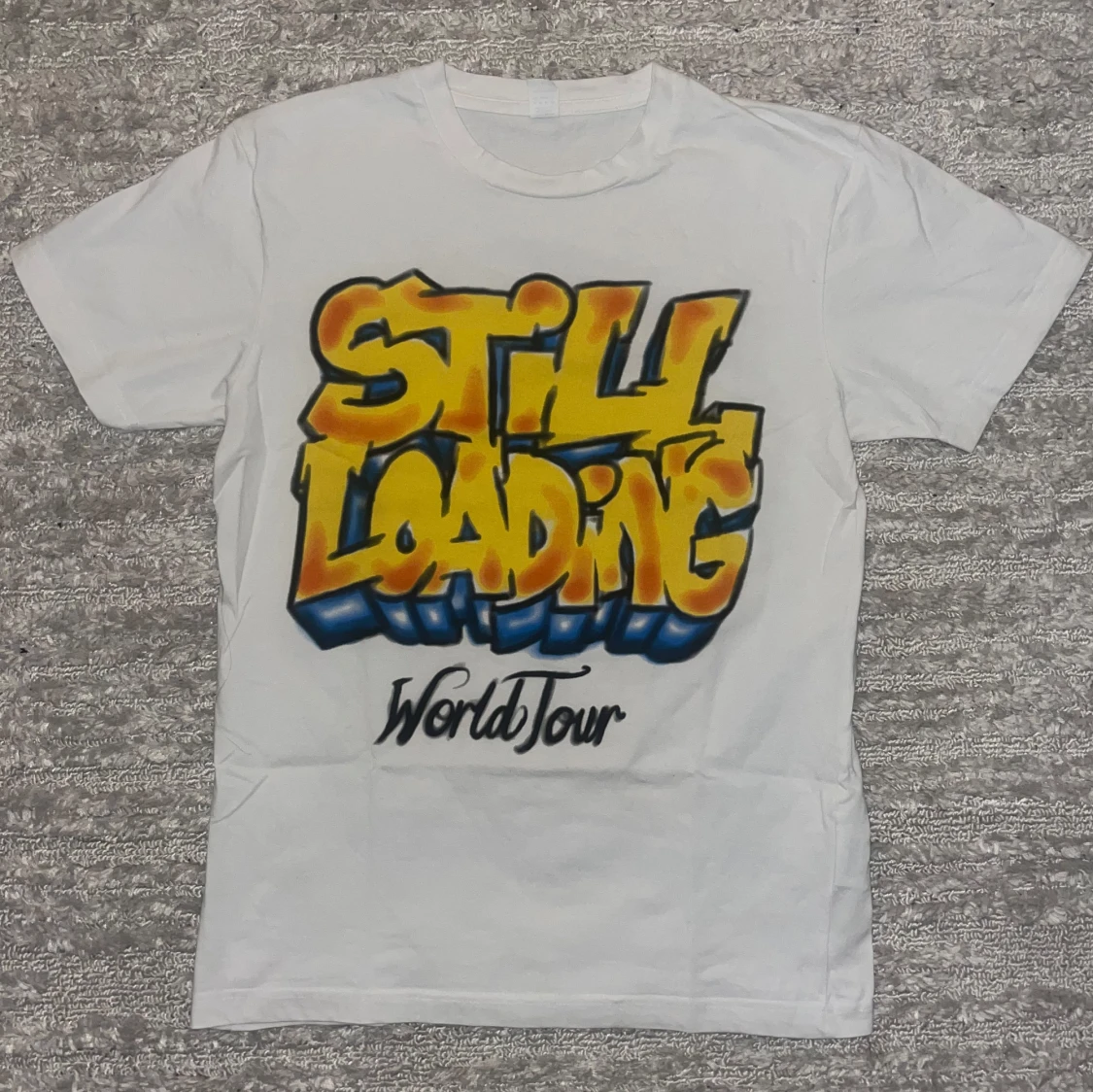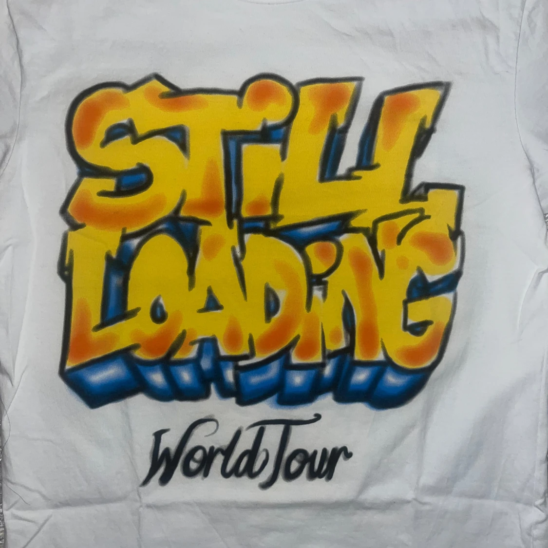 Central Cee T-shirt. Inga skador använd 2 gånger! Den kan användas av killar och tjejer ’STILL LOADING World Tour' i gult och blått, och på baksidan 'LIVE YOURS' med