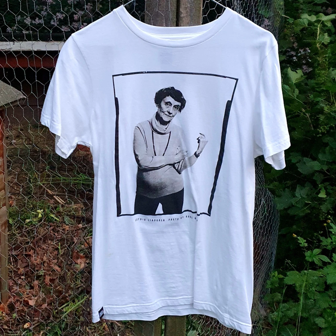 Astrid-t-shirt från Dedicated <3 Originalpris var 350 kr. Bröstlängd 40cm; Plagglängd 55cm; Passform: Rätt så stretchig, unisex
