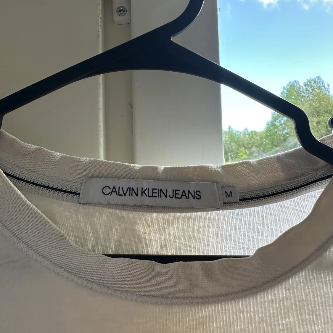 Vit t-shirt från Calvin Klein Jeans med en blå bröstficka och CK-logga. Klassisk rund halsringning och korta ärmar. Tunt och mjukt material som känns skönt mot huden. Perfekt för dig som gillar stilrena plagg med en twist.