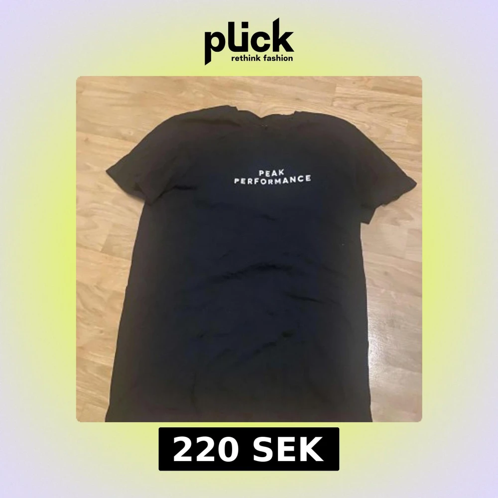 Säljer en svart t-shirt från Peak Performance med vit text på bröstet. T-shirten är kortärmad och har en klassisk passform. Sparsamt använd. Pris går att diskutera vid snabb affär.