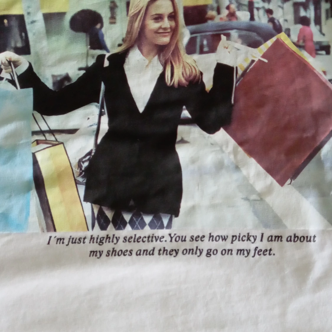 Fin t-shirt med tryck från filmen Clueless. Köparen står för frakt, alltså pris+frakt 💕