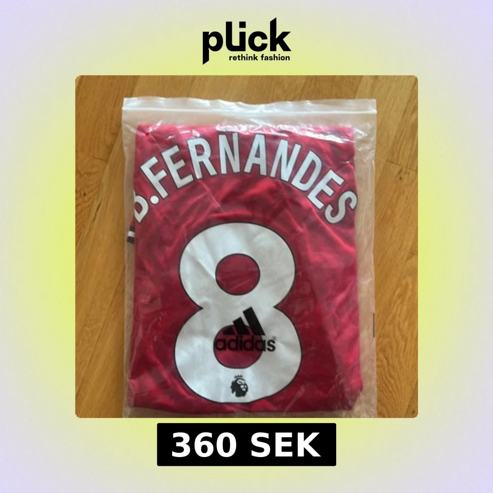 Manchester United matchtröja med Fernandes och nummer 8 på ryggen. Röd med svarta detaljer och vita tryck, officiell Premier League-variant. Adidas-logga, klubbmärke och Snapdragon sponsor på bröstet. Slim fit, V-ringad krage och korta ärmar. Tillverkad i lätt polyester.