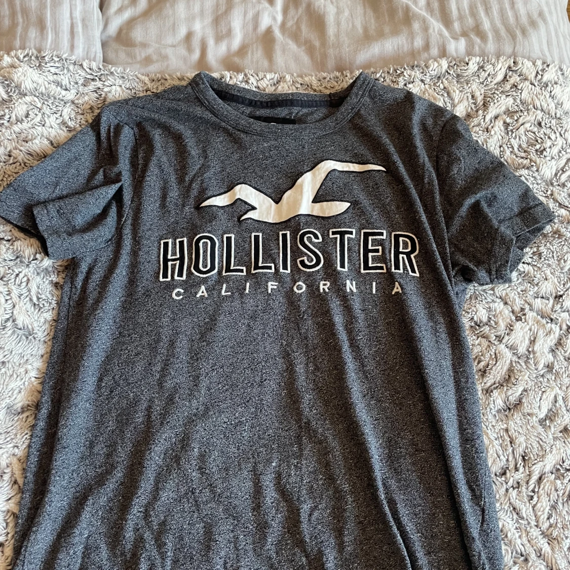 Tryck gärna på ”KÖP NU”. Nästintill oanvänd t-shirt från hollister i grått🤍 storlek XS men stor i storleken så den är mer som en M.