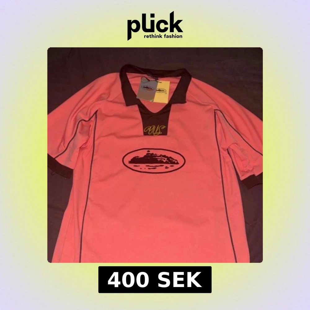 Snygg rosa fotbollströja från Artcutic i storlek small. Tröjan har svart krage och svarta detaljer längs ärmarna och sidorna. På bröstet finns ett svart tryck med motiv och en gul signatur. Materialet är lätt och andas, perfekt för träning eller match.