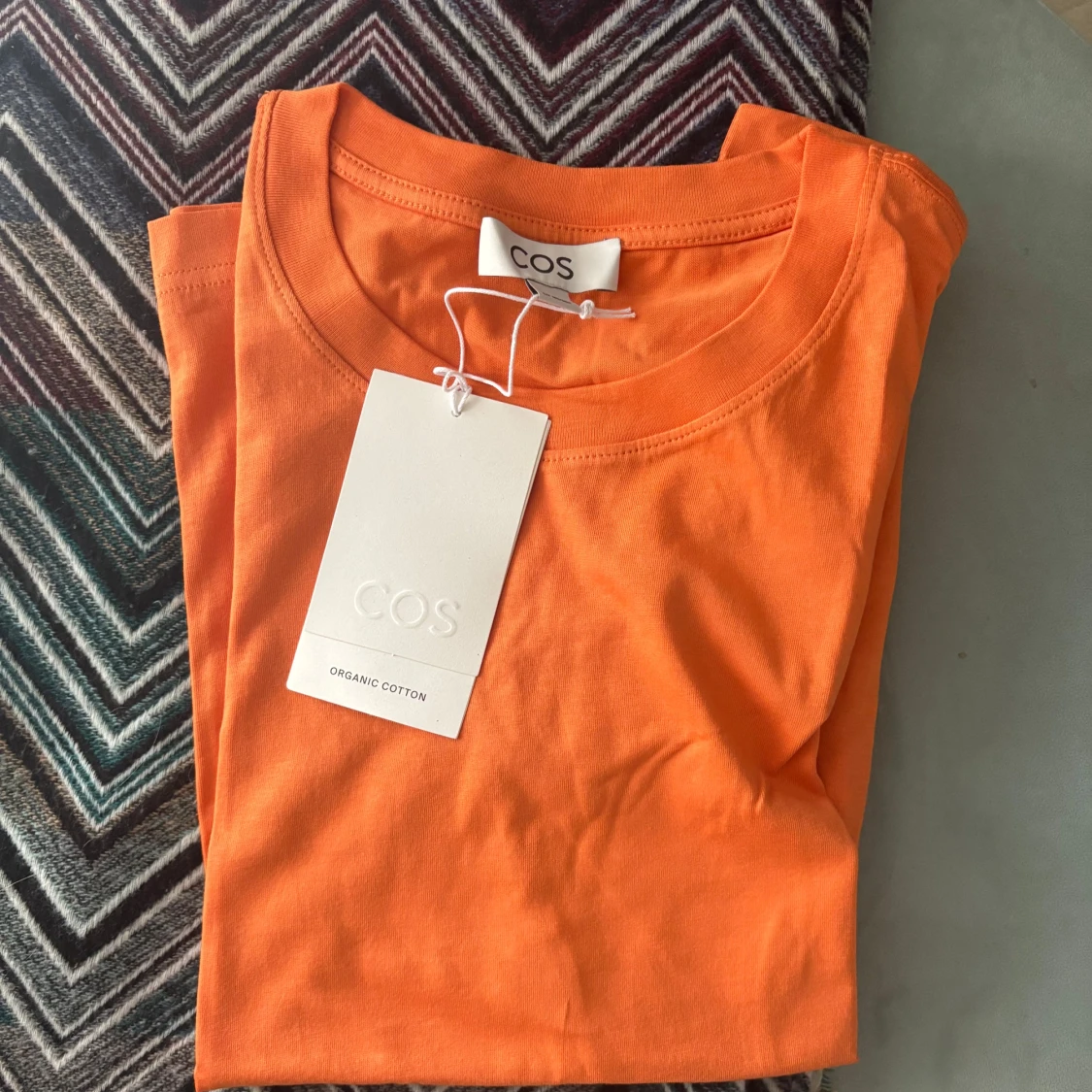 Snygg orange t-shirt från COS i ekologisk bomull. Klassisk rund halsringning och korta ärmar. Perfekt basic-plagg med clean look och skön passform. Enkel att matcha med jeans eller shorts för en chill stil.