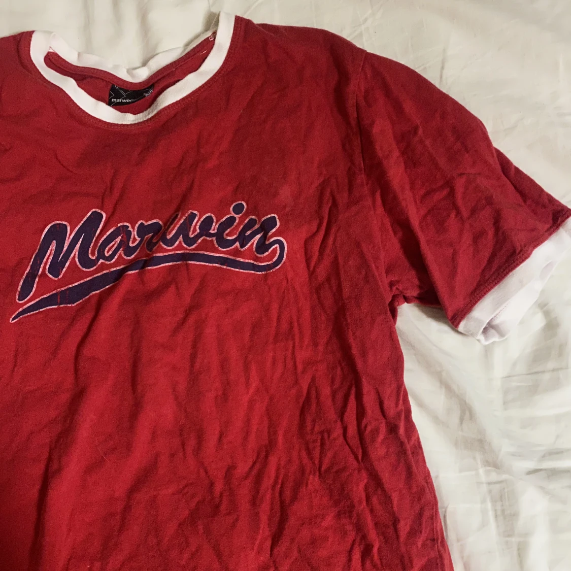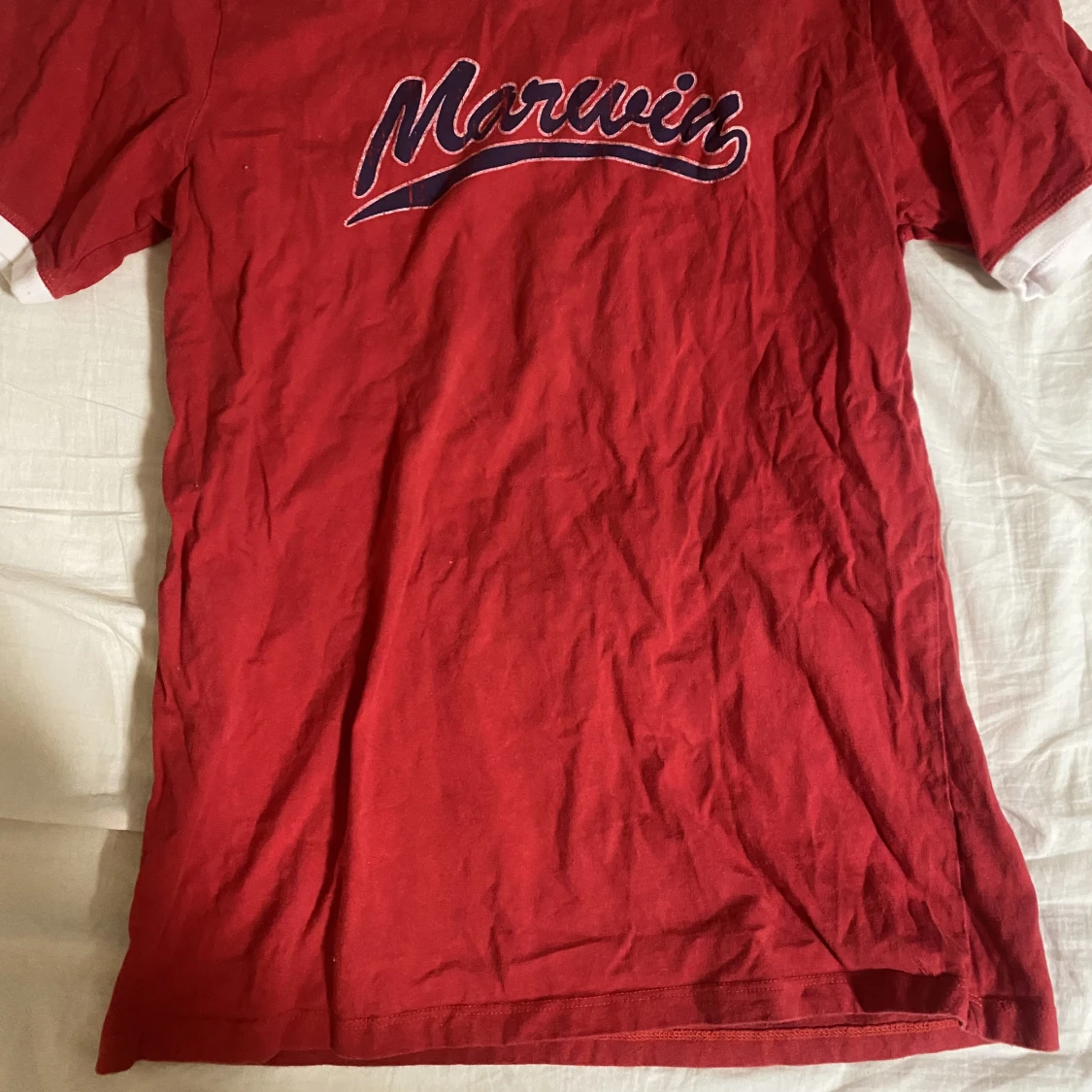 Röd tröja, storlek XL men mer som M (sitter löst på M)😊