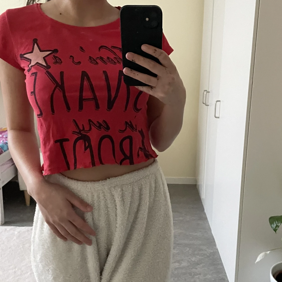 Supersnygg croppad röd tshirt. Är i mycket bra skick. Har endast en liten rand som knappt syns. Text ”theres a snake in my boot”. Frakt tillkommer. Skriv gärna vid frågor ❤️